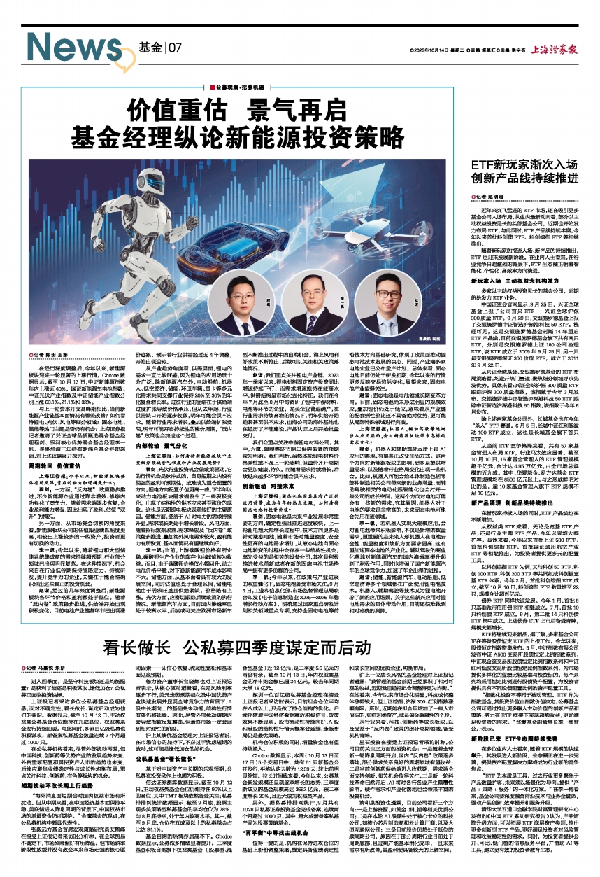 程剑:光伏行业投资机会偏政策驱动,它的行情机会是脉冲式的,自身短期之内没有很强的盈利可预期性,或难成为重仓配置的方向。锂电方向配置价值更高一些,下半年以来动力电池板块需求端发生了一些积极变化,出现了结构性的供不应求甚至涨价的现象,这也是近期锂电板块表现较好的主要原因。储能方面,受益于AI对电力的需求持续升温,需求或长期处于增长阶段。风电方面,随着招标数据改善、需求释放及“反内卷”政策稳步推进,叠加海外风电需求较大,盈利能力有所恢复,基本面情况有望继续向好。