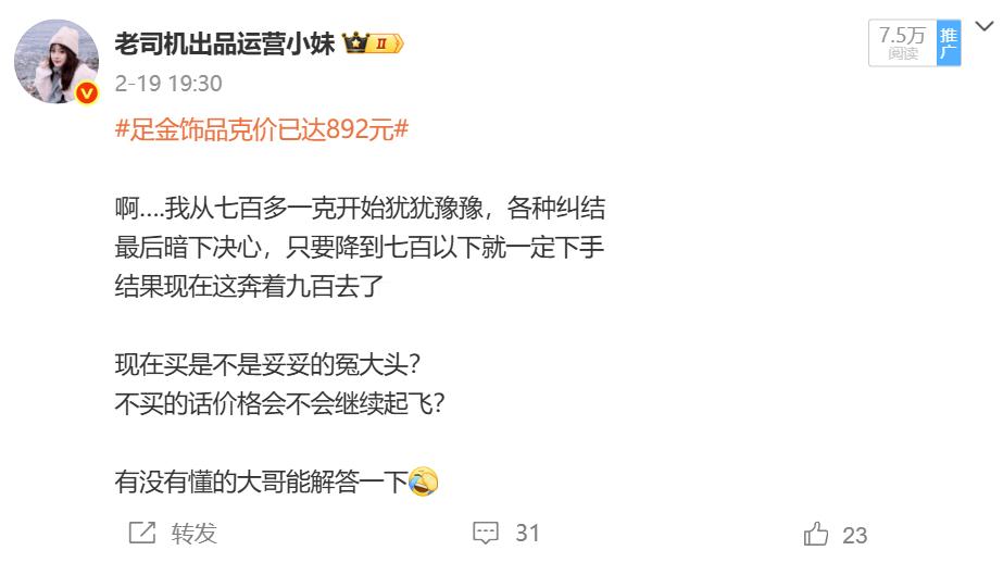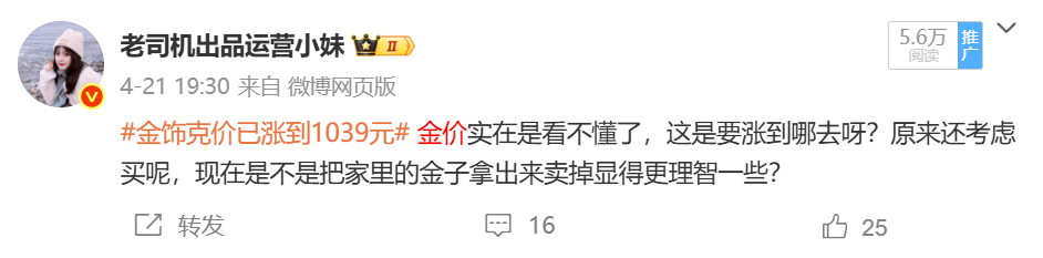 金饰价格涨到1213元 一路见证了黄金价格的起飞[允悲]750元的时候我犹豫现在