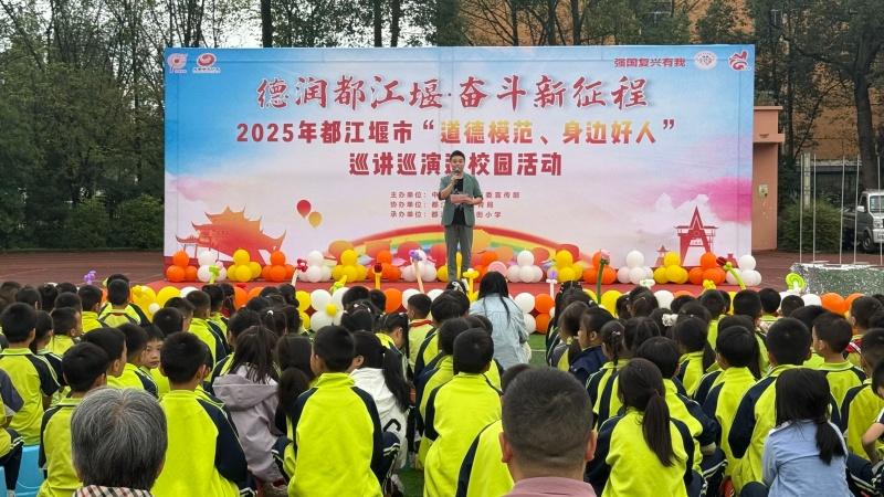 德润都江堰,奋斗新征程。10月11日下午,由都江堰市委宣传部主办的“德润都江堰·奋斗新征程——2025年都江堰市道德模范、身边好人事迹巡讲巡演进校园”活动在柳街小学举行。活动通过事迹宣讲、现场访谈、文艺演出与互动问答相结合的方式,为学校师生送去精神与艺术交融的文明盛宴。