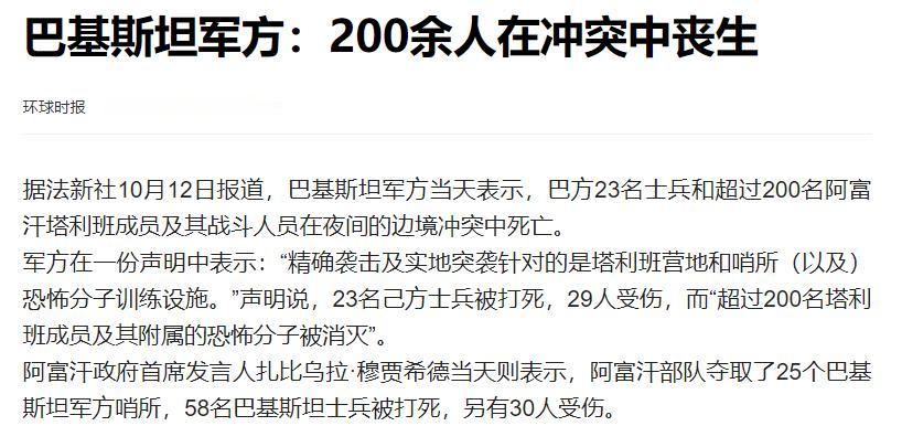 阿富汗虽战死200人,但却不会向美国求救! 当地时间10月11日夜至12日凌晨,阿富汗与巴基斯坦两国在边境地区交火,这是2021年阿富汗局势变化后双方最激烈的一次冲突。 有意思的是,双方都将此次行动称为"反击",巴方表示是在打击跨境恐怖组织,阿方则称是对巴方此前空袭的回应。关于伤亡数字,双方说法存在差异:巴方称打死200名武装分子,己方23名士兵阵亡;阿方则表示己方9人死亡、16人受伤,巴方有58人死亡、30人受伤。 冲突发生后,沙特、卡塔尔等国迅速呼吁双方保持克制,通过对话解决问题,目前两国边境的主要口岸已处于关闭状态,局势尚不明朗。 而就在冲突引发外界关注时,有流言称阿富汗准备向美国妥协,允许美军重新返回阿富汗以应对此次与巴基斯坦的冲突。 面对这种说法,阿富汗政府12日立刻作出澄清,发言人穆贾希德明确表示"阿富汗人不会将本国的任何土地交给其他任何国家"。这番表态不仅击碎了流言,更直接针对了美国重返阿富汗的企图。 此前,美国总统特朗普在多个公开场合提到,想"收回"曾经的重要军事据点巴格拉姆空军基地并重新部署美军。这个基地曾是美军在阿富汗的核心据点,2021年美军撤离时留下了大量军事装备,如今美方想重返,本质上还是想掌控阿富汗的战略要地。 但阿富汗的此番态度,已经十分明确了:绝不允许历史重演。 阿富汗之所以如此强硬,背后是几十年惨痛历史换来的教训。从苏联入侵到美国近20年的驻军,这个国家饱受外国军队的蹂躏。特别是美国2001年以反恐为名发动战争后,阿富汗有3万多平民死于战火,6万多人受伤,约1100万人沦为难民,整个国家经济濒临崩溃。 2021年美军仓促撤离时,喀布尔机场的混乱场景还历历在目,这样的"帮助"只会让阿富汗陷入更深的动荡。所以对阿富汗人来说,主权完整比什么都重要,他们从骨子里不信任外部势力的"援助"。 而从现实来看,允许美军重返更是弊大于利。一方面,阿富汗民众对美国驻军的记忆充满痛苦,一旦美军回来,必然引发国内强烈反对,甚至可能导致局势失控;另一方面,美国的介入只会让阿富汗成为大国博弈的棋盘,就像过去那样,最终受苦的还是普通百姓。 阿富汗政府很清楚,真正的安全只能靠自己争取,虽然现在和巴基斯坦有边境冲突,但他们也表示"更倾向于通过对话解决一切问题",这种自主解决争端的态度,正是对国家主权最好的维护。 哪怕面临暂时的困难,阿富汗也绝不会用牺牲核心利益来换取短期利益,因为他们太清楚失去主权意味着什么——那是比战争伤亡更难愈合的伤痛。