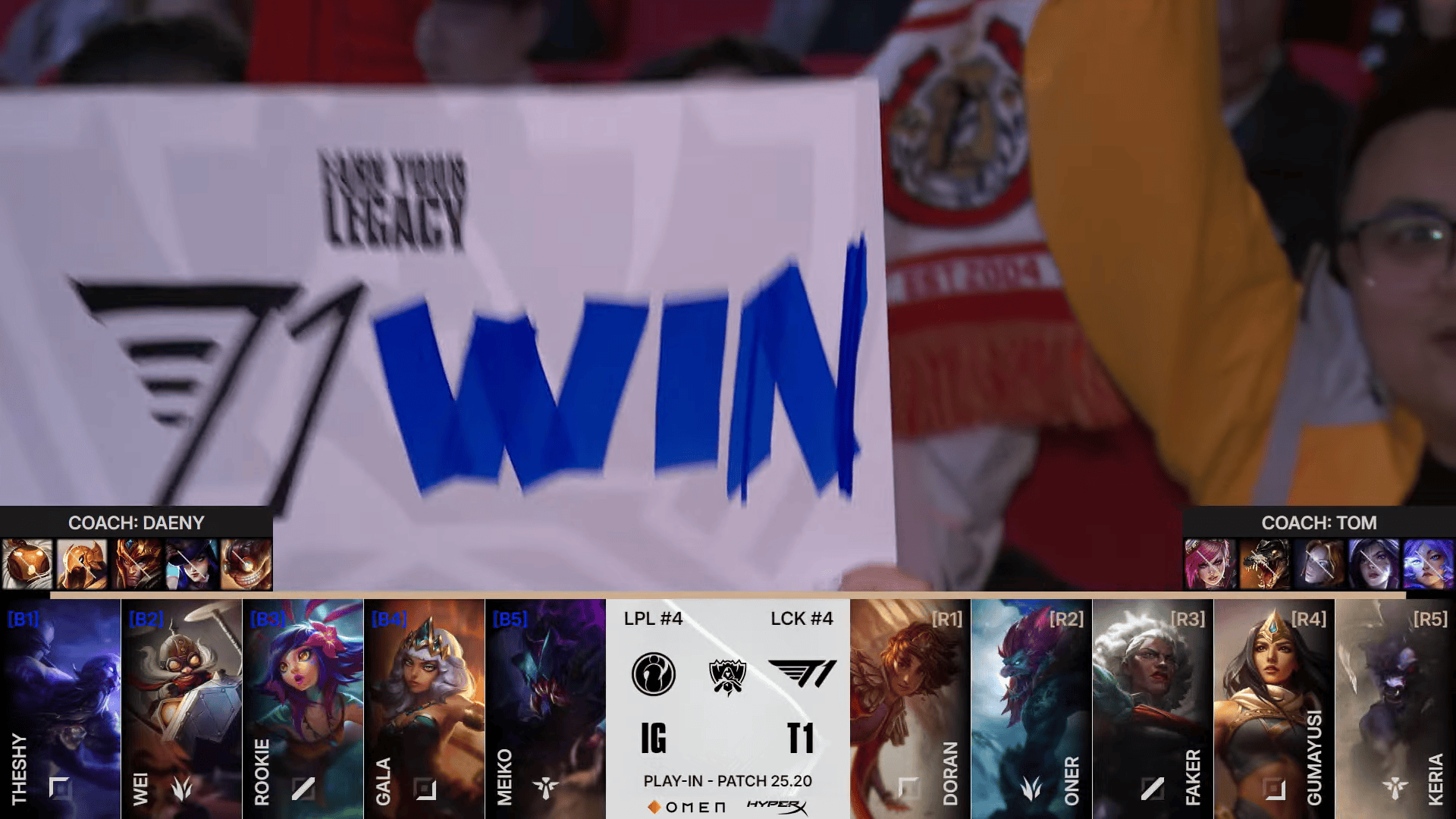 T1对阵IG首局BP:TheShy末选雷克塞;Rookie瑞兹打Faker岩雀