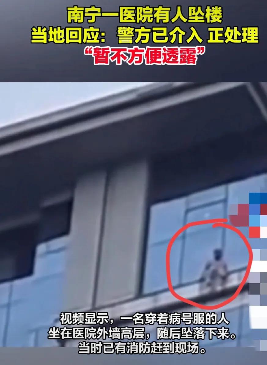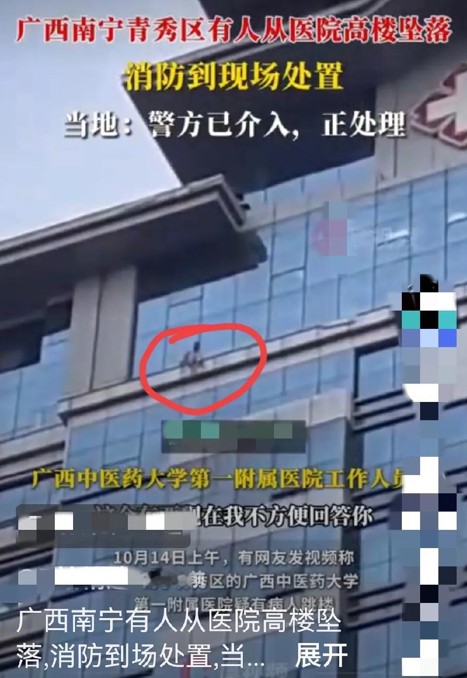警方介入 医院窗子没装栏杆吗?病人最无助,是抑郁症发作吗?还是生活没了希望?唉,生命如此脆弱,患者在病魔的折磨下,丧失了活下去的勇气吧!逝者已逝,生者坚强! 据报道,2025年10月14日上午,一名49岁男子王某某在广西南宁市青秀区东葛路的广西中医药大学第一附属医院坠楼身亡,警方介入调查后排除刑事案件可能。 再有,目击者称,一名穿病号服者坐在医院高层外墙后坠落,消防部门到场处置。 另外,警方初步调查显示,死者近日因病住院治疗,坠楼行为符合高坠特征,无他杀痕迹。 最后,事件反映医院安全管理需加强,但警方快速响应澄清事实,静等官方通报!