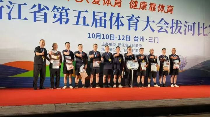 日前,在浙江省第五届体育大会拔河比赛上,代表杭州出赛的富阳银湖拔河队力压群雄,勇夺男子640公斤级项目冠军。