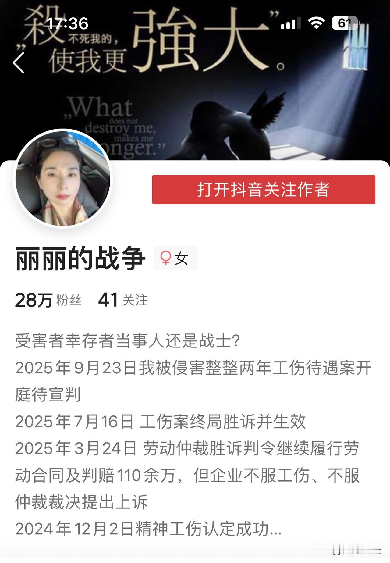 崔丽丽在抖音与小红书上的的风评迥异 崔丽丽在抖音上有28万粉丝,在小红书上有9.6万粉丝。 抖音和头条信息互通,我们在头条上能看到崔丽丽本人发布的视频,同时也可以查看到视频下方评论区的评论。 崔丽丽事件发酵后,头条和抖音上的评论大部分是针对崔丽丽提出质疑。 小红书上的反响却截然不同。 崔丽丽在小红书上的自我介绍非常简约,称~丽丽的战争还在继续,但我要为姐妹们做点什么。 10月4号.崔丽丽在小红书主页视频下支持她的评论下点赞。