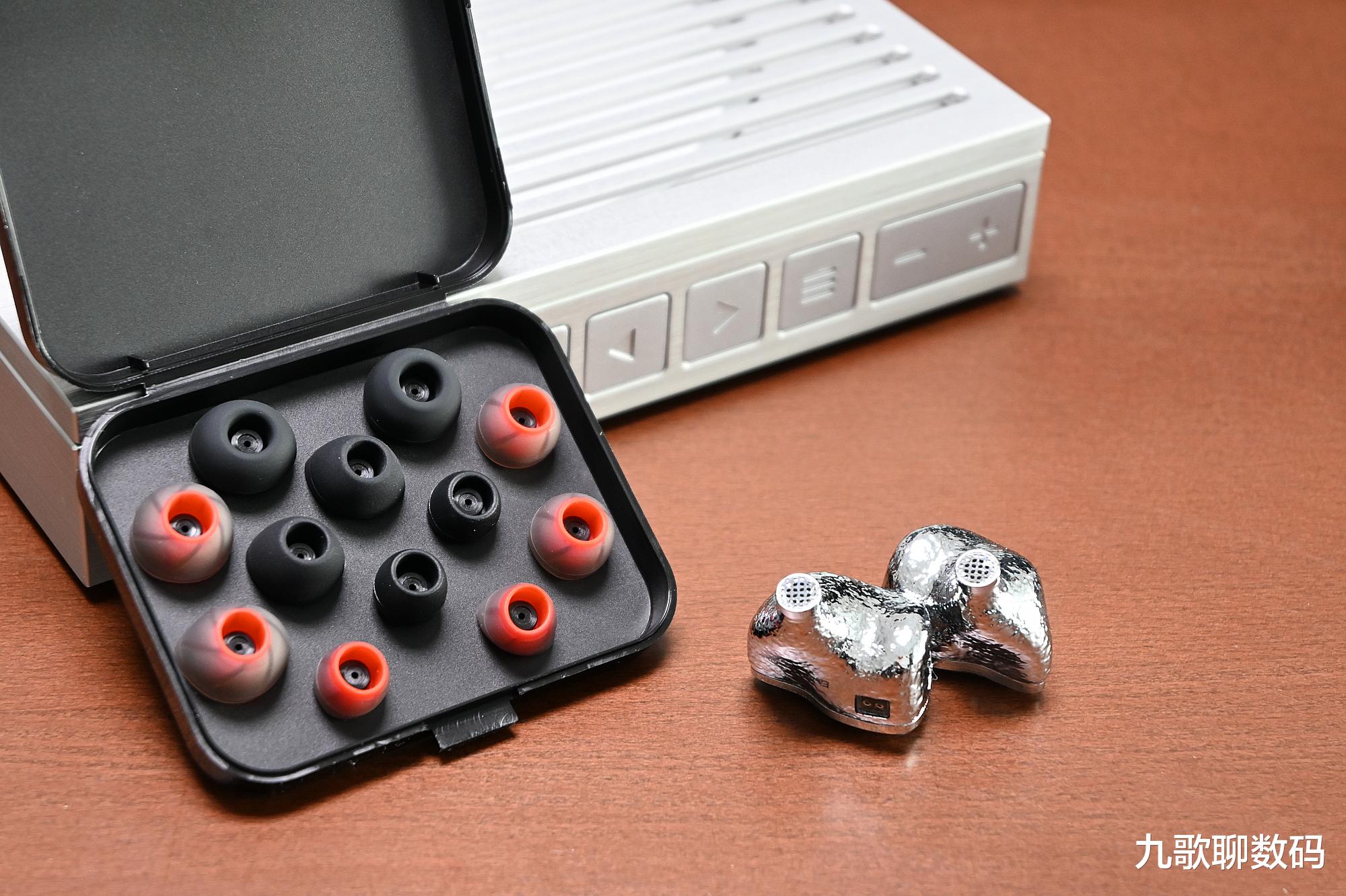 耳机塞体的设计让人印象深刻,陨石的造型让人第一时间想到了那句话“精美的石头会唱歌”。6063系航空铝的合金坨坨还是有些份量感的,五轴精密切削成型通体圆润,线条流畅,给人以浑然天成之感。特别是经人工细腻打磨和电镀着色等多道工序加工而成的“陨石纹”涂层表面相当的漂亮。有种小时候所吃的用锡纸精心包裹着的洒心朱古力的既视感,既有着金属的质感,又有别于循规蹈矩的规格造型。