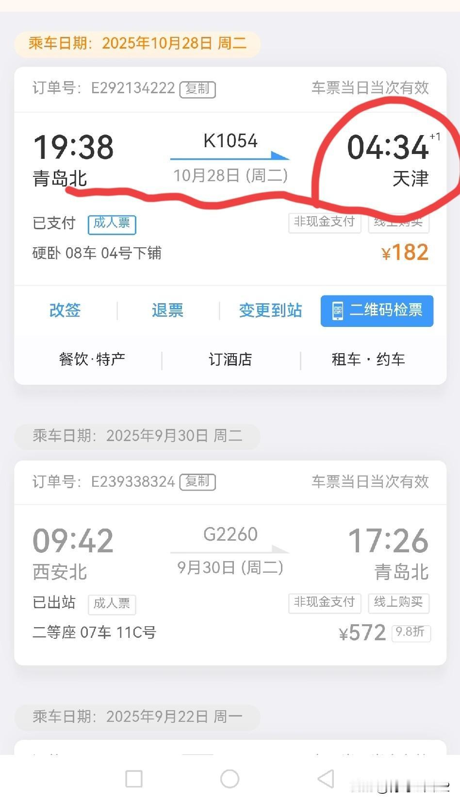 今天的心情先是晴,然后转多云…有谁能帮我这个忙呢?事情是这样的:我准备乘火车去天津旅游,想买软卧和硬卧的下铺票,要提前15天抢票哦,今天上午9:45开抢, 10月28号的硬卧软卧下铺票。我提前10分钟就拿着手机目不转睛的盯着手机。 9:45准时开抢,但是遗憾的是没抢到软卧抢到了硬卧下铺,令我分外高兴。但当我仔细一看:到天津的时间是10月29日早晨4:34分时,就开始发愁了,心情顿时由晴转阴。因为04:34天还没亮呢,我一个80岁的独行侠到哪去休息呢?友友们能帮我出出主意吗?我预定的旅馆中午以后才能收我入住,怎么办呢?列车卧铺 火车票 旅行火车票