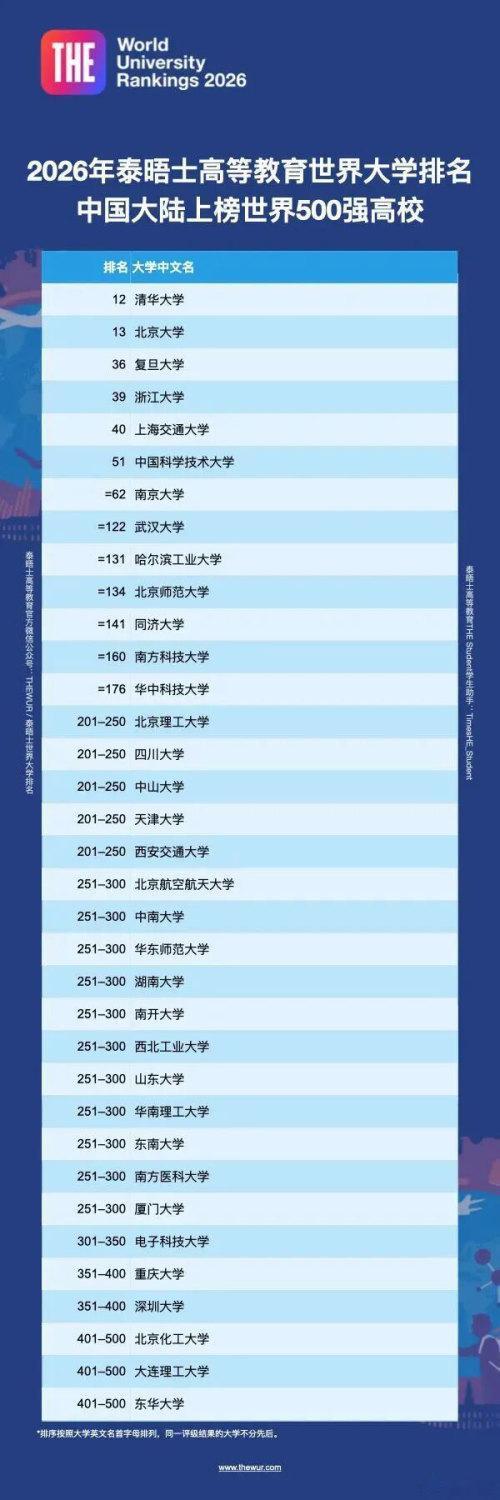 【泰晤士世界大学排名发布,美欧大幅下降,亚洲强势攀升,如何看待新版排名和趋势?】据都市快报相关消息,10月9日,2026年泰晤士高等教育世界大学排名正式揭晓。其中,清华大学为亚洲榜首,再次蝉联全球第12名。北京大学则连续第二年位居第13名。复旦大学是第36名。