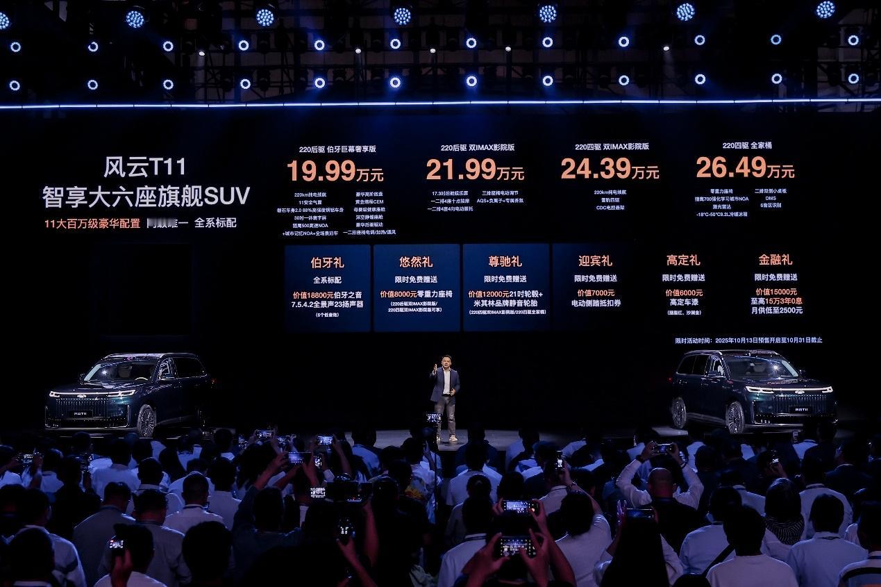 看完风云T11的预售发布会,最直观的感受是:奇瑞这次是带着“掀桌子”的诚意来的。以“兑现”为主题的品鉴会上,这款风云品牌焕新后的首款旗舰SUV,用19.99万起的预售价+11大全系标配+至高66800元权益,直接把20-30万级家庭SUV的价值标杆拉高了一个维度。 先聊聊最戳家庭用户的安全,这也是发布会最敢“秀肌肉”的环节。现场直播的实车碰撞太有冲击力了:88%高强度钢铝合金打造的车身,在高速碰撞后A柱、B柱纹丝不动,乘员舱完好无损,11个安全气囊精准铺开,连同级少见的后风窗安全气囊都没缺席。对有娃家庭来说,这种“潜艇级”的防护不是噱头,而是实实在在的安心。更难得的是,从电池IP68防护到母婴级座舱,从AEB紧急制动到数据安全加密,物理防护和智能预警全拉满,这才是家庭车该有的安全态度。 空间和场景体验上,风云T11算是把“每一排都是VIP”做透了。3120mm的轴距比不少竞品都长,我特意留意了第三排。1米8的人坐进去膝盖还有一拳余量,座椅带加热和电动调节,彻底告别“小板凳”尴尬。露营时一键放倒能变1.8米大床,配合-18℃到50℃的冷暖冰箱,装得下帐篷睡袋,也冰得了西瓜奶茶;带娃出行时,40处储物空间能收完奶瓶玩具,静谧座舱还能哄睡哭闹的娃,这种场景化设计比单纯堆配置贴心多了。 最让我意外的是“入门即豪华”的底气。19.99万的基础版就标配23个扬声器的“伯牙之音”音响,30吋寰宇屏和猎鹰高阶智驾也不用加钱选,这配置放在同级里几乎找不到对手。要知道,很多品牌把10个扬声器都当高配卖点,风云T11直接给足23个,7.5.4.2全景声效果堪比移动音乐厅。再算上预售权益里的免费零重力座椅、21吋米其林轮胎和3年0息金融方案,等于花入门价就能享顶配体验。 动力方面,1400km综合续航彻底解决了家庭长途出行的续航焦虑,增程和纯电模式的噪音差小于0.5dB,配合磁悬浮底盘,开起来平顺又安静,家里老人孩子坐久了也不容易晕车。智能驾驶上,高速NOA、城市NOA和跨楼层泊车全配齐,新手爸妈再也不用怕停车,长途自驾也能解放右脚,这才是智慧出行该有的样子。 说实话,20-30万级六座SUV市场里,用户一直面临“配置够的太贵,便宜的配置缩水”的困境。但风云T11用11大全系标配、务实的场景设计和诚意定价,把豪华和实用做到了平衡。对注重性价比的多孩家庭来说,这款车大概率会成为今年最值得冲的“家庭旗舰”毕竟能把安全、空间、豪华和智慧全拉满,还卖得这么实在的,目前真没第二个。