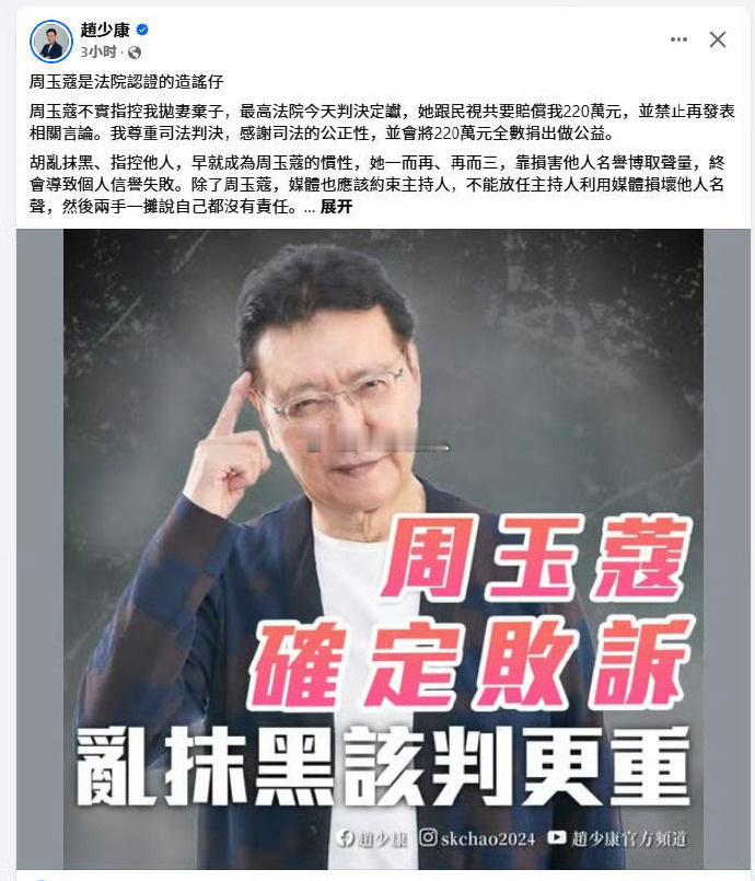 图2图3是少康批评大陆惩戒岛蛙5名臭嘴污蔑大陆,少康说大陆要尊重岛蛙乱讲一通的言论滋油,但少康双重标准、自己做不到尊重别人的言论,经常起诉别人给自己造谣(图4),也曾经起诉过周玉蔻(图5)[便便][便便]