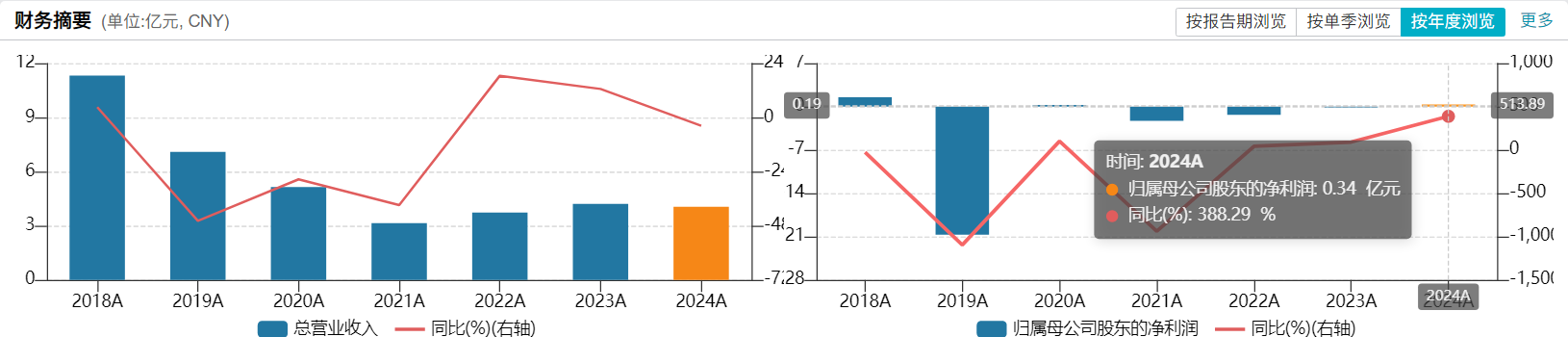 亚太药业已连亏6年,营收基本维持在4亿元左右,图源:Wind