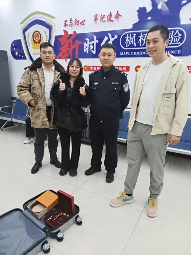 随后,民警通知王先生到场核实,经开箱检查,两个行李箱内的名贵包、黄金首饰、婚纱礼服等物品均完好无损,王先生激动地握住民警的手,反复说着:“太感谢了,要是找不回来,婚礼都不知道该怎么办了。”
