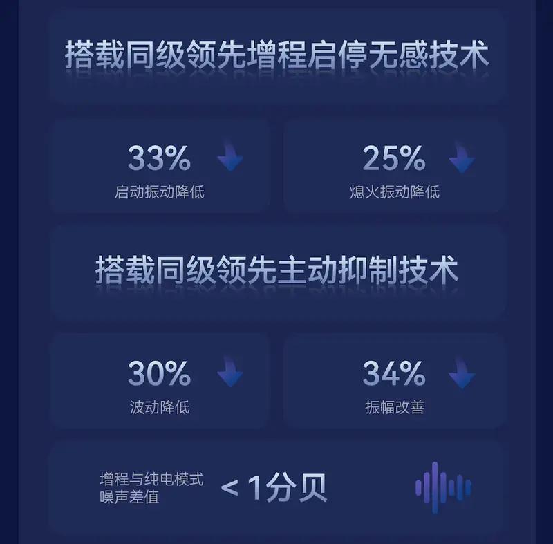 全新阿尔法T5增程版的北汽神擎增程,搭载增程启停无感技术,启动振动降低33%,熄火振动降低25%。采用同级领先主动抑制技术,波动降低30%,振幅改善34%,增程与纯电模式噪声差值