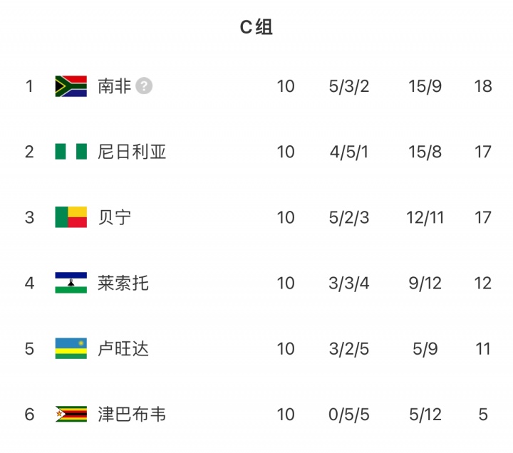 直播吧10月15日讯世预赛非洲区小组赛C组,尼日利亚4-0贝宁,本场比赛奥斯梅恩戴帽,丘库埃泽助攻双响,但由于南非赢球,尼日利亚只能屈居C组第二。