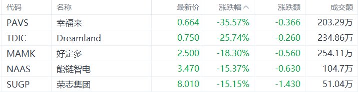 美股异动丨幸福来跌35.57%,为跌幅最大的中概股