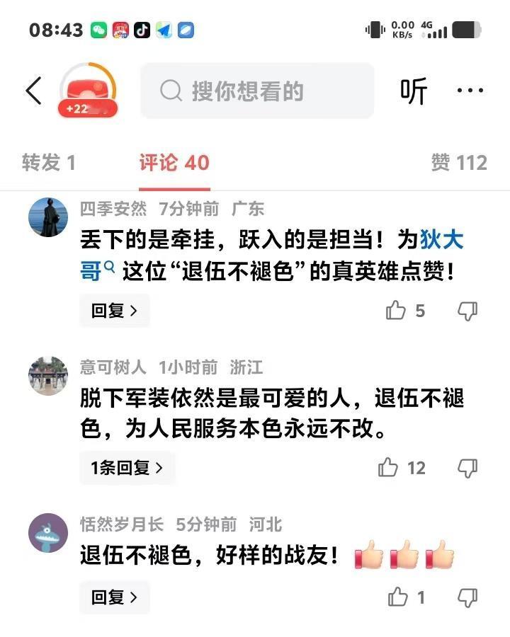 泰州退役军人丢下2岁幼子跳河砸窗救人!满臂鲜血却笑称“小伤不值一提”的真相令人泪目 (来源:综合现代快报、目击者采访及网友评论) 深秋的河水刺骨,一辆奥迪轿车在泰州市海陵区莲花二号区附近失控冲入河中,车顶迅速被河水吞没。岸边人群惊呼时,一道身影已甩开外套、丢下妻儿,攥着石头纵身跃入浑浊的河水。这位名叫狄双成的退役军人,用淌血的手臂砸开生命通道的那一刻,他留给岸边两岁儿子的背影,成了这座城市最动人的注脚。 狄双成的妻子至今心有余悸:“他跳下去时,儿子在车里哭喊着要爸爸。”但这位40岁的吊车司机脑中只有一个念头——车里有人!尽管水性普通,他仍选择冒险。石头滑脱沉入河底,他一个猛子扎下去捞起,反复砸向天窗。玻璃碎裂声混合着河水翻涌,每一秒都像在生死线上挣扎。 当车窗终于破开缺口,狄双成与随后跳下河的民警协力将受困者拖出。河水浸透的衣衫下,他的小臂被玻璃划出深口,鲜血顺水流散,却直到受困者被送医才感到刺痛。医院里,他轻描淡写包扎伤口的模样,恰如当年军营里那句“轻伤不下火线”的铮铮誓言。 目击者手机记录的画面中,狄双成上岸后第一件事是奔向路边紧紧抱住儿子。这个满臂血迹的父亲,用行动诠释了“守护”的双重含义——既是对陌生人的仗义,更是对至亲的深情。网友“四季安然”的评论一针见血:“丢下的是牵挂,跃入的是担当!” 退役十年,狄双成的工作从保家卫国转为操纵吊车,但军魂已刻进骨血。同事回忆,他曾在台风天坚守岗位抢修设备,也曾悄悄资助困难工友。这种刻进本能的责任感,或许正是他面对危局时毫不犹豫的底气。 被救者家属辗转找到狄双成道谢时,他反而不好意思:“换了谁都会这么做。”但现实中,纵身一跃的勇气并非人人皆有。心理学家分析,这种“本能式勇敢”背后,是长期纪律训练塑造的价值排序——他人生命优先于个人安危。 事件发酵后,退役军人事务局点赞狄双成“退伍不褪色”。而更令人动容的,是无数网友分享的温暖记忆:公交司机护送老人过马路、消防员火场逆行的背影……狄双成的纵身一跃,撞开了人们心中善意的闸门。 泰州河畔的这场救援,如同一面镜子照见人性光辉。当狄双成抱着儿子离开时,路人为他披上的外衣、民警递来的热水,乃至网络上千万次点赞,都在诉说同一个真相:英雄从不是孤岛,而是唤醒善意的种子。 泰州 退役军人 丢下2岁儿子跳河救人 凡人英雄 见义勇为 正能量