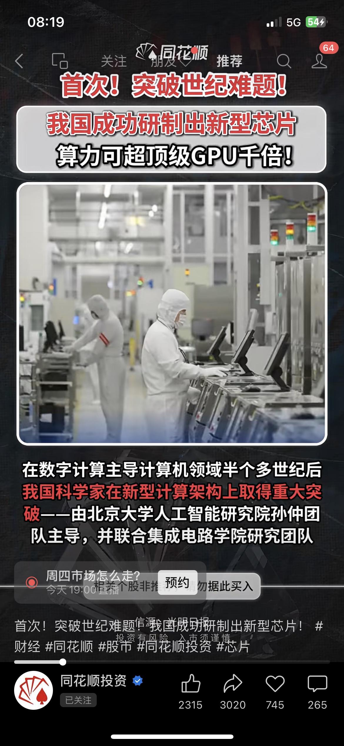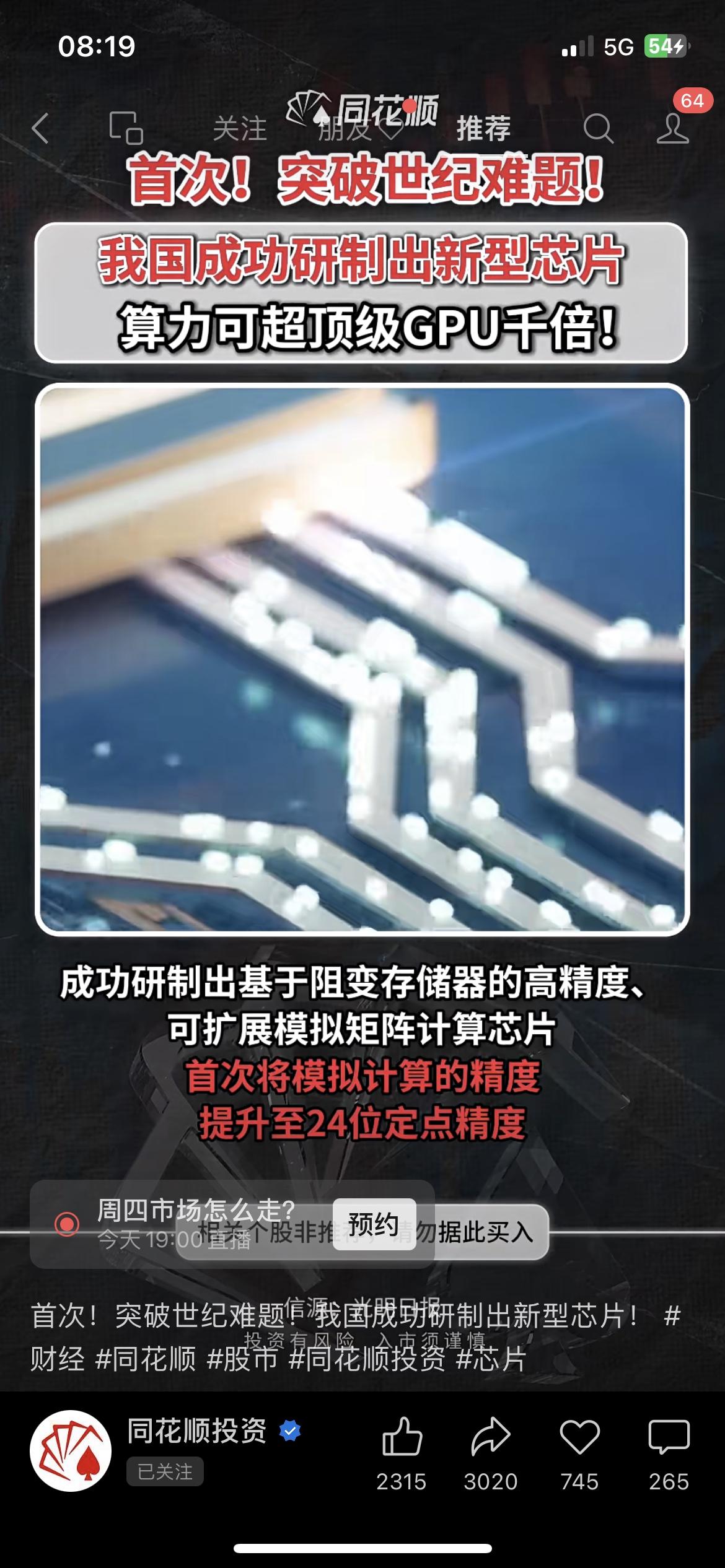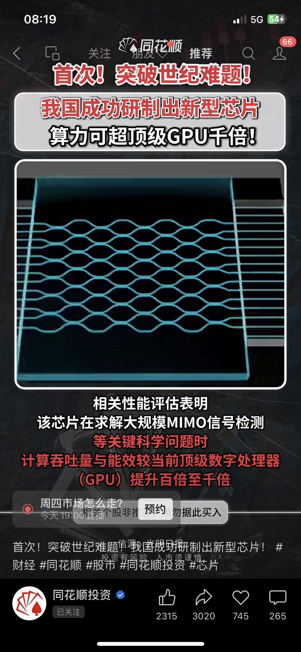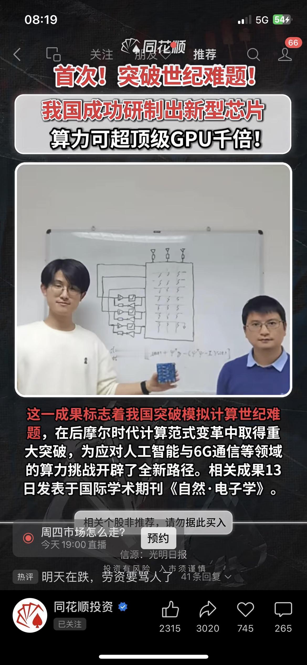 我国科学家在新型计算架构上取得重大突破,相关成果发表于《自然·电子学》 北京大学人工智能研究院孙仲团队联合集成电路学院研究团队,成功研制出基于阻变存储器的高精度、可扩展模拟矩阵计算芯片。 该芯片首次将模拟计算的精度提升至24位定点精度,在求解大规模MIMO信号检测等关键科学问题时,计算吞吐量与能效较当前顶级数字处理器(GPU)提升百倍至千倍。 这一成果标志着我国在模拟计算领域取得重要进展,为人工智能与6G通信等领域的算力挑战开辟了新路径,相关成果于10月13日发表于《自然·电子学》。芯片 人工智能 中国科技 存储芯片技术 ai芯片技术 算力芯片