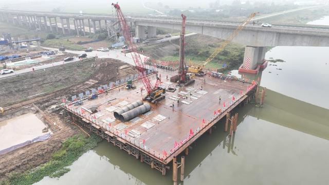 为确保施工安全、质量及减少对杭埠河河道的影响,项目团队周密策划,优化调整钢板桩支护以及深基坑专项施工方案,组织专家进行严格论证,确保方案科学可靠。同时,在桩基施工前,对地质情况进行钻探并报勘察单位进行复核,做到心中有数,精准施工。