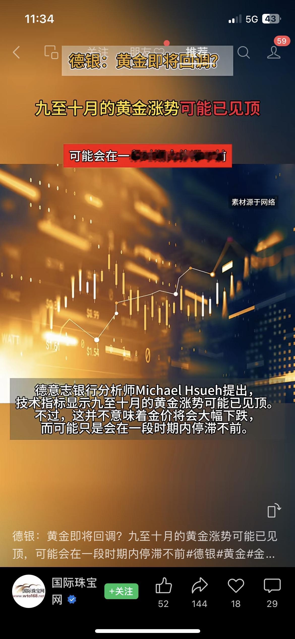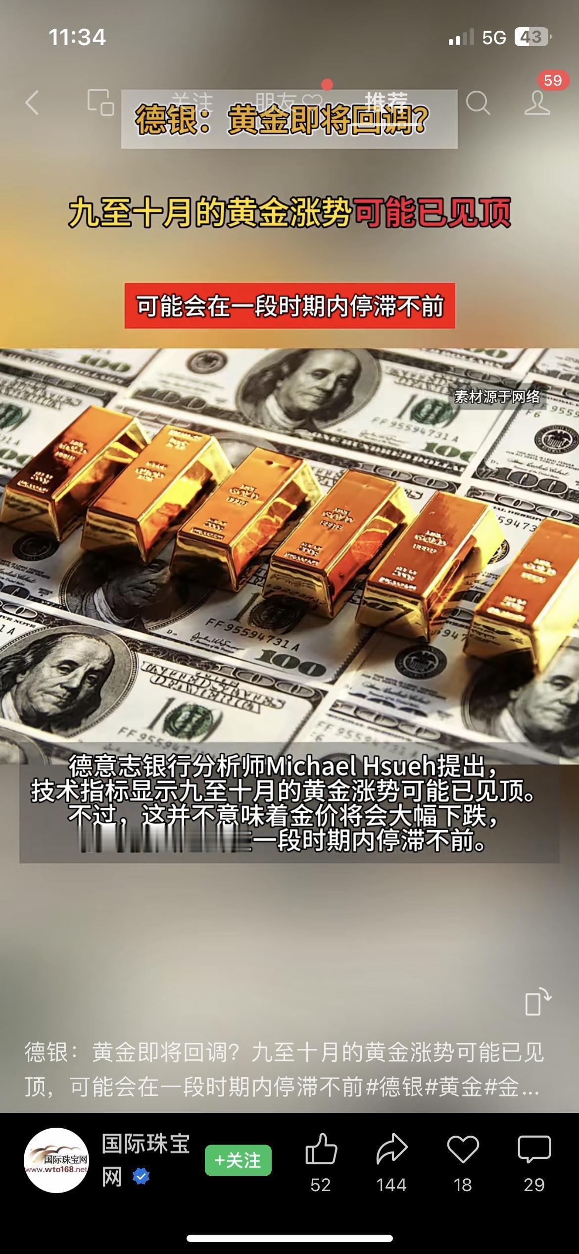 德银突然预警!黄金涨势或已见顶,接下来要停滞不前? 德银分析师放出猛料:九到十月的黄金涨势可能已经见顶了!不过不是大跌,而是会在一段时间里停滞不前。 之前华尔街还喊着黄金明年冲6000美元,现在德银这波分析直接反向操作,你们手里的黄金是继续拿还是先跑? 黄金 德银