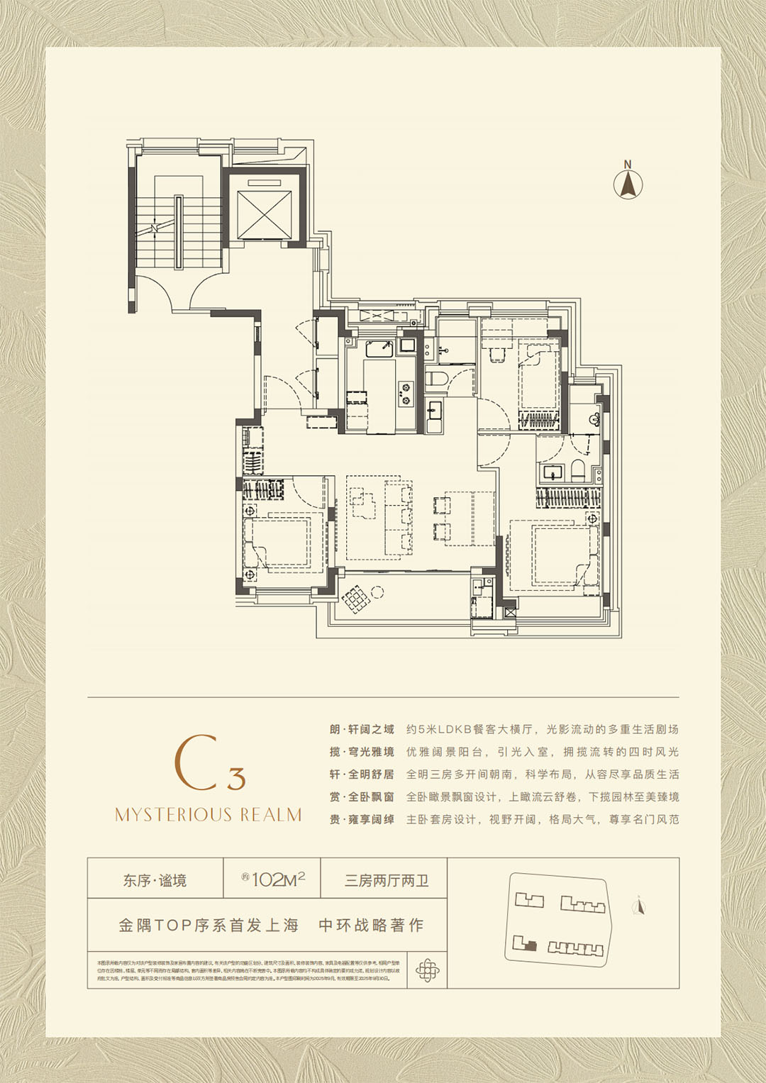 ·建面约102㎡:约5米面宽客厅,飞机户型高利用率