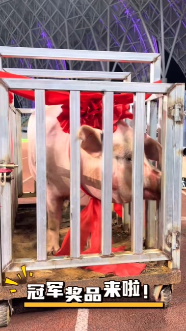 10月12日晚,被称为“县超”的五华县“球王杯”足球超级联赛落幕,横陂队夺得冠军,奖品是一头重达400斤的大肥猪。10月13日,相关视频在社交平台传播后引发网友热议。有网友调侃,“真是名副其实的‘猪’事顺利”、“别人夺冠拿奖杯,他们是‘举猪’庆功”“冠军猪不仅重,还‘上镜’。第一次见到这么有仪式感的奖品”。