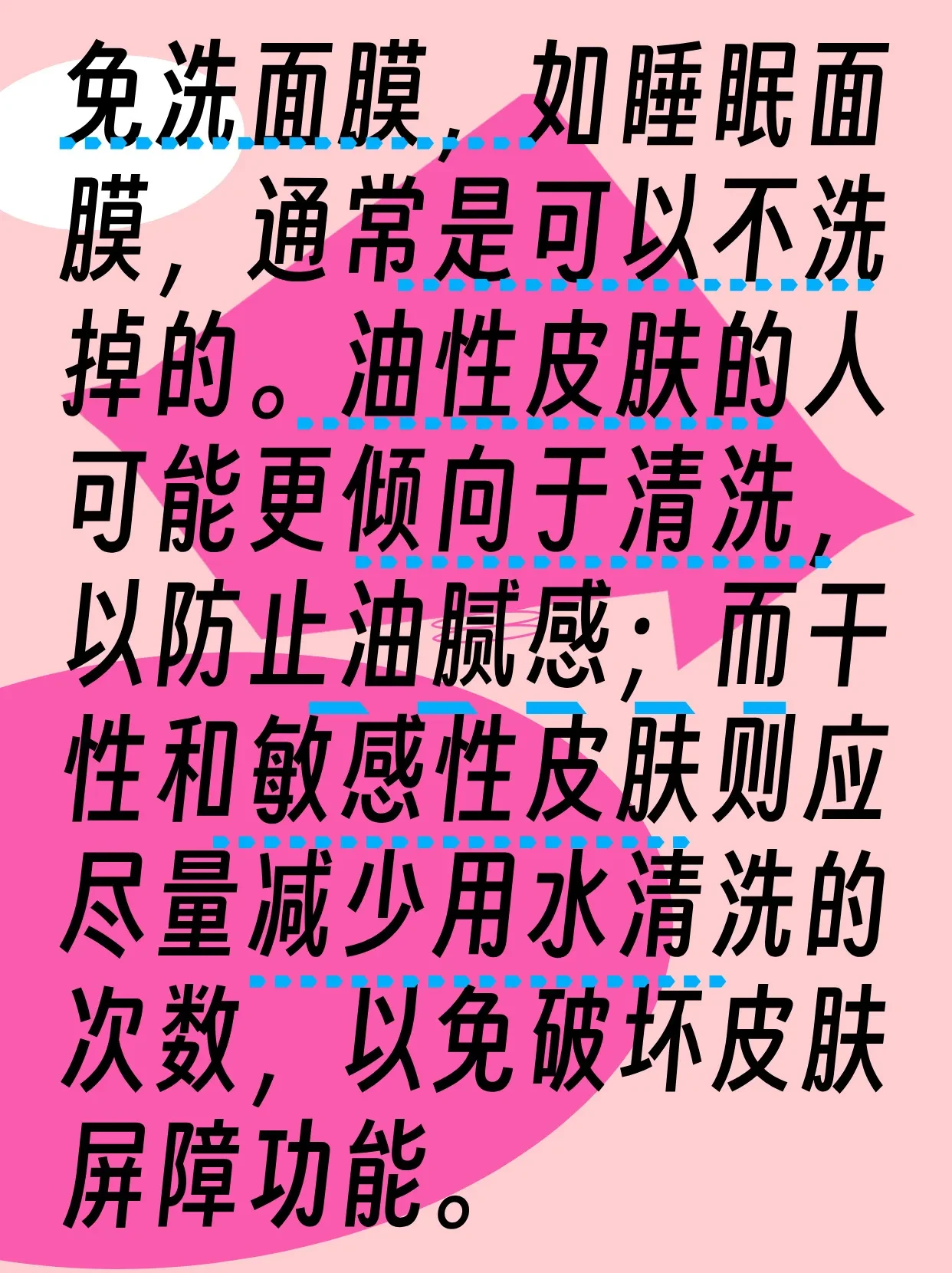 一般来说 如果是免洗面膜,如睡眠面膜,通常是可以不洗掉的。它们设计为在夜间深层滋养肌肤。然而,即使是免洗面膜,如果你感觉脸上油腻或不适,或者担心面膜残留会堵塞毛孔,那么也可以选择在睡前将其洗掉。