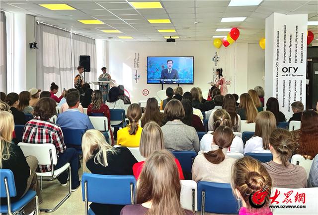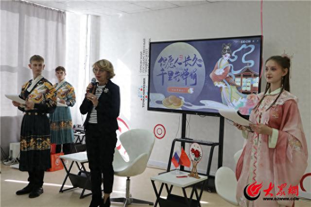 本次活动还为两地青少年搭建了“月圆共唱”文化交流平台,播放了菏泽市定陶区第四实验小学同学们精心录制的《水调歌头》中秋主题祝福歌曲,参与活动的奥廖尔同学跟拍清唱,在悠扬旋律中相互传递节日祝福,用音乐打破了语言与地域的隔阂,进一步加深了彼此的文化认同与情感联结。此外,同步设置了“书香映友谊”主题读书角,摆放了菏泽市在奥廖尔市第一高中设立“中华文化之角·尼山书屋”时投放的书籍,参与同学面向镜头分享阅读感受,在文字与思想的碰撞中延续交流热情,为未来两城文化交流合作奠定了坚实的青少年基础。