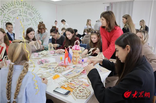 活动现场,以中国中秋文化与菏泽牡丹文化为纽带,精心设置穿汉服、制花灯、绘团扇、展非遗、猜灯谜、品月饼等沉浸式互动体验,氛围热烈非凡。穿汉服环节,精致襦裙与典雅曲裾引得民众竞相体验,大家纷纷拿起手机拍照留念,定格这份独特的节日美好;制花灯区域同样人气高涨,从搭建骨架到粘贴彩纸,参与者指尖灵动翻飞,一个个承载中秋寓意的牡丹花灯逐步成型,成为菏奥两城友谊的生动见证;团扇绘制台前,牡丹图案与中秋元素在创意的加持下绽放笔尖,成为兼具菏泽特色与中秋氛围的专属手作;猜灯谜环节更是将活动推向热潮,写有中俄双语的灯谜悬挂四周,众人三五成群热议探讨,猜对时的欢呼与领取月饼礼品时的喜悦交织,让现场充满欢声笑语,也让“幸福团圆”的中秋寓意通过味蕾悄悄传递,悄然激发起两地民众跨越国界的情感共鸣。