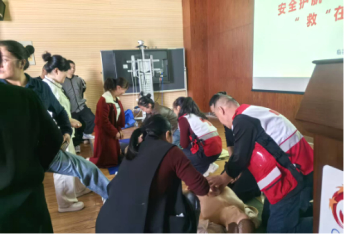 实操练习阶段,工作人员分组借助模拟人、AED训练机等教具反复演练,志愿者们巡回指导,及时纠正按压深度不足、AED的使用等问题。大家学习热情高涨,纷纷主动请教操作难点,力求掌握每一项技能要领。