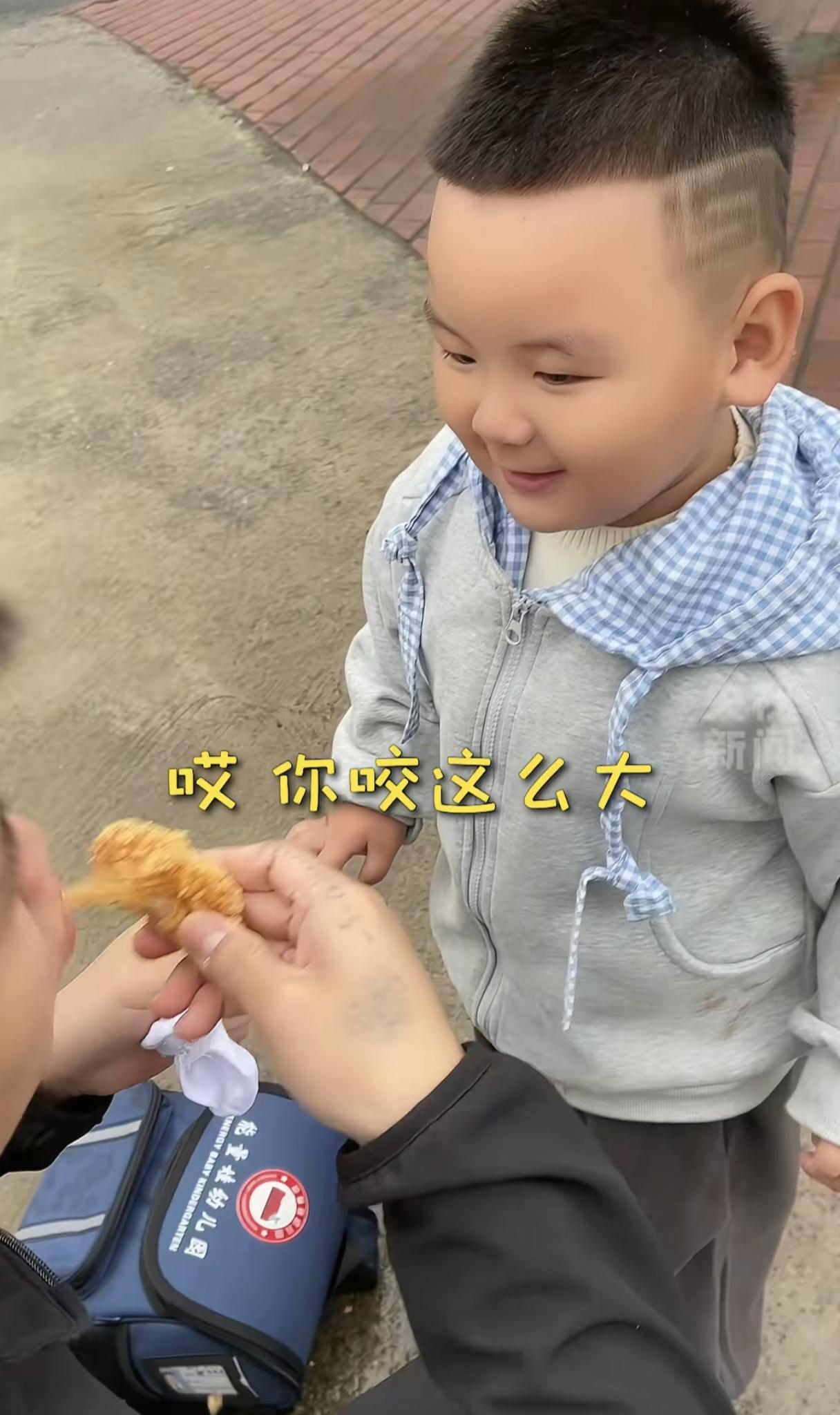 爱不仅有温度,还得有味道!孩子幼儿园放学,开心的从书包里掏出一只袜子,爸爸纳闷的问:“这是啥?”,儿子用稚嫩的声音回答:“鸡腿。” 爸爸接下来的举动也很让人感动,第一反应不是先去打开鸡腿,而是扒着儿子的脚看看,担心不穿袜子的小脚不舒服。 然后爸爸才把袜子里的鸡腿拿出来,儿子则在一旁看着,露出开心的笑容,应该是觉得自己做了件很了不起的事情。 儿子告诉爸爸鸡腿是从幼儿园拿出来的,老师吃饭时候发的鸡腿,一边说着,还一边可爱的咽下口水。 小家伙肯定也是很爱吃的,但仍然舍得带回来和爸爸妈妈分享,对于三岁的孩子来说,这份爱真让人感动。 儿子明明馋的口水都快下来了,还说:“妈妈也喜欢吃,你给妈妈吧”。重要的是爸爸妈妈一点没扫兴,一家三口分着把鸡腿吃完了。 孩子的想法真的是很单纯的,爸爸妈妈也没有嫌弃袜子的不卫生,对孩子拥抱表示感谢,情绪价值给的满满,这份爱真是让人又想笑,又感动啊!