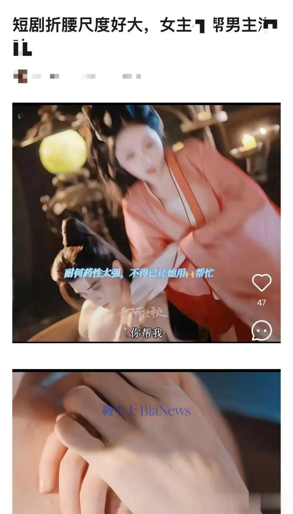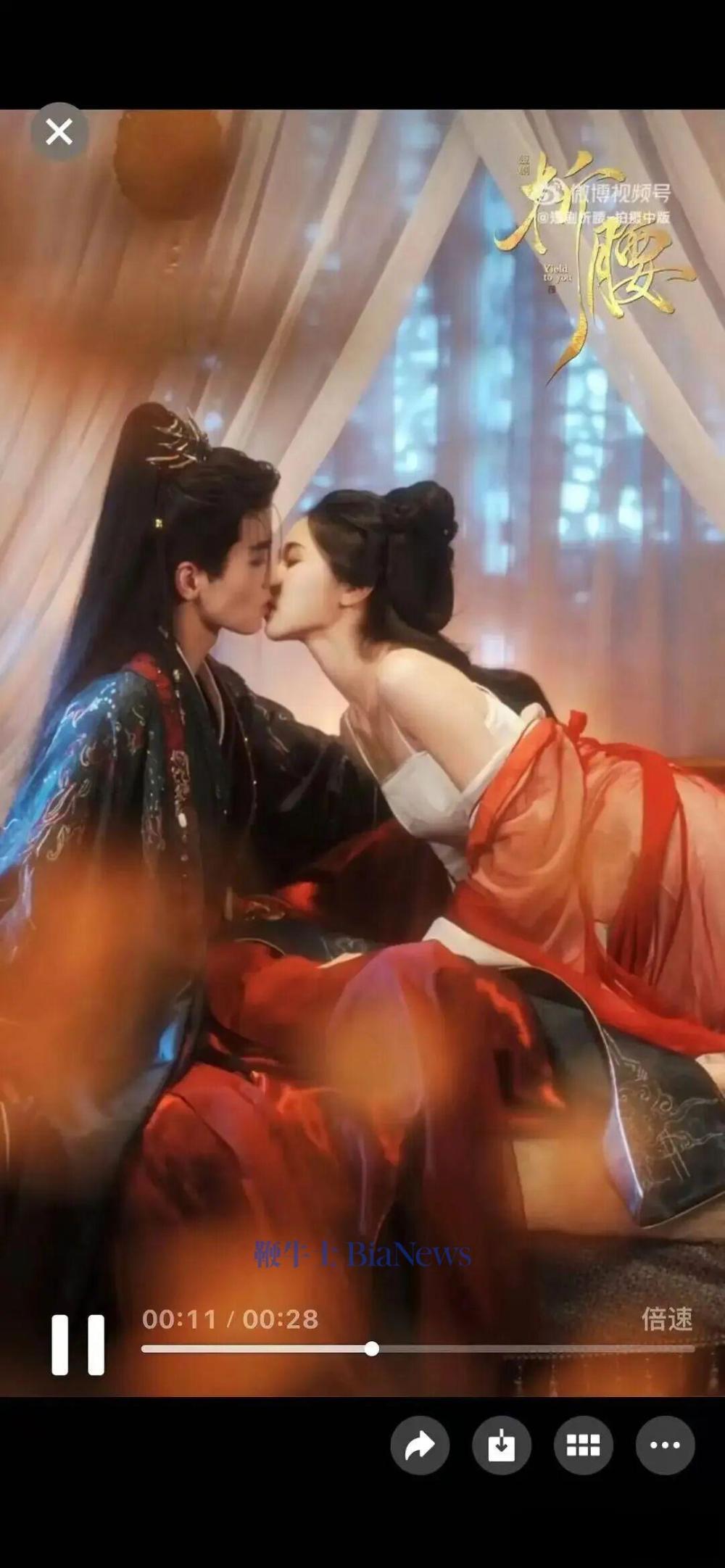 不过,今天短剧《折腰》由于剧情尺度过大,剧中呈现原著中“浴池疗伤”“香药强吻”“新婚夜剑隔婚床”等,第七集就出现圆房戏份,在微博、小红书等多个平台引不少舆论。