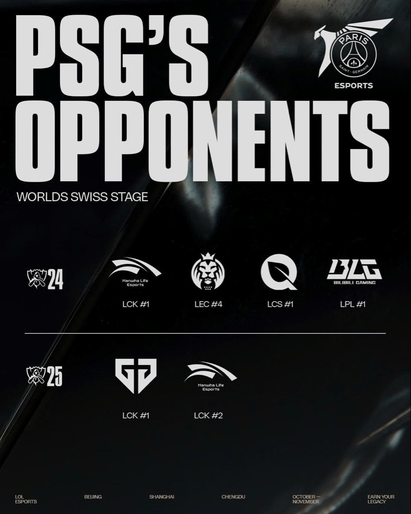 虎扑10月15日讯LCP官推发布PSG近两年世界赛瑞士轮对手: