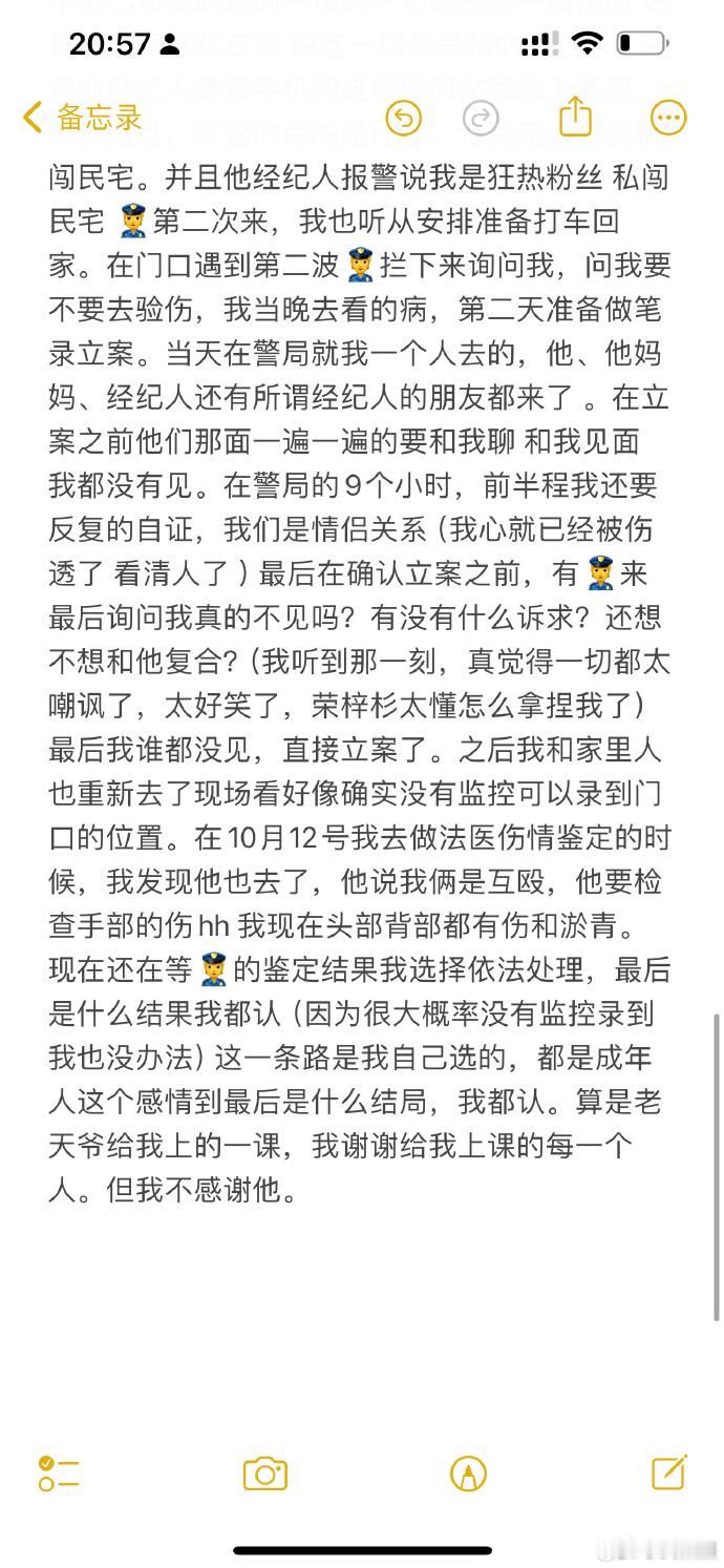 李禹熹还是选择报警立案,到法医鉴定伤情流程时荣梓杉又称是双方互殴。