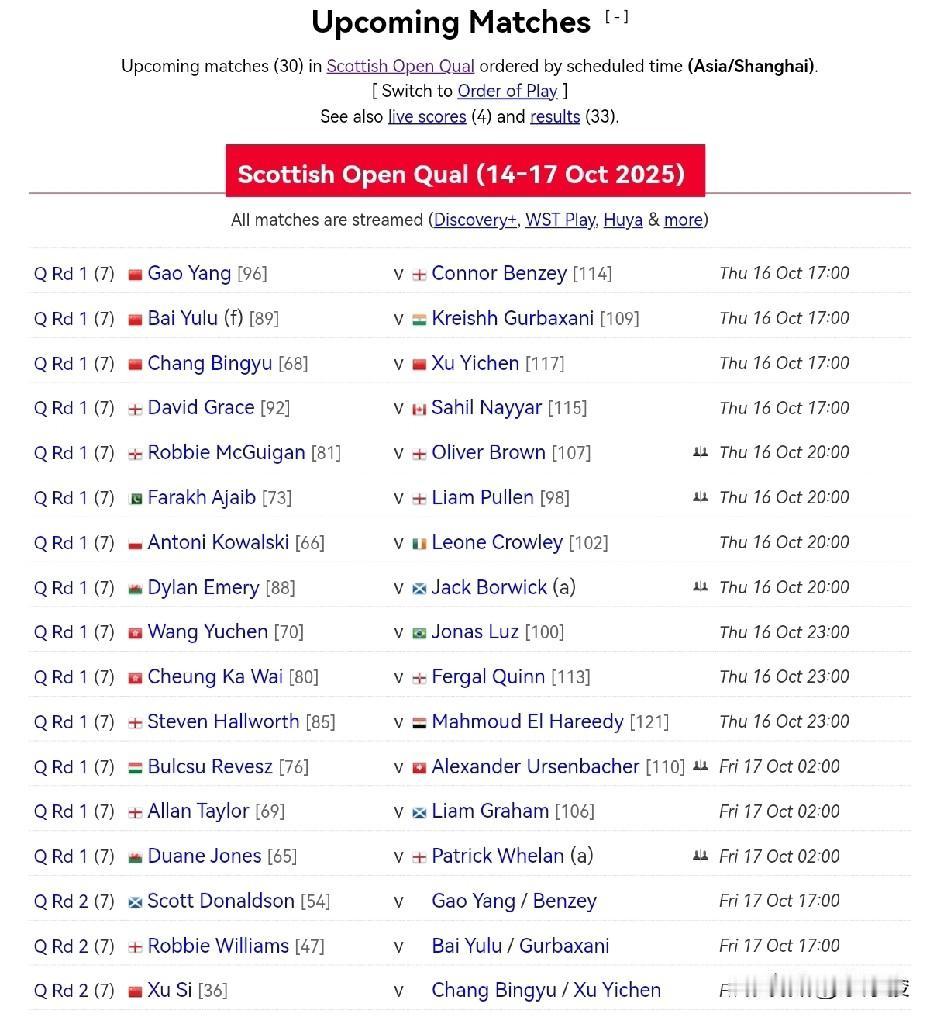 苏格兰公开赛资格赛最新战报,刘宏宇、江俊、蓝裕豪等3名中国球员晋级正赛。姚朋成决
