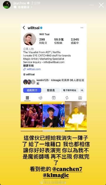 周杰伦ins发文后秒删周杰伦喊话魔术师好友 据台媒,15日周杰伦在社交平台发文喊话魔术师好友蔡威泽,称对方毫无预警地消失,“这家伙已经消失一阵子了,找了一堆借口,我也都相信了,还让你好好完成表演” ,随后又删除帖文。