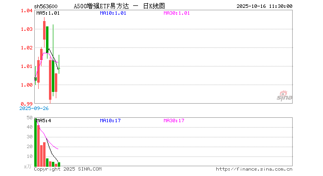 A500增强ETF易方达(563600)业绩比较基准为中证A500指数收益率,管理人为易方达基金管理有限公司,基金经理为黄浩东,成立(2025-09-10)以来回报为0.92%,近一个月回报为0.87%。