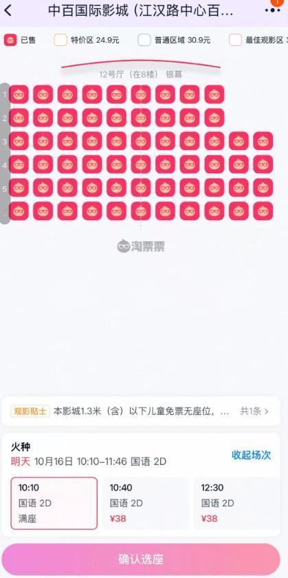 《火种》今天上映,资本还是出手了,某电影院竟然满场。 最匪夷所思的是,满座的还是vip影厅,票价都比其他场的贵三十块钱。 排片最多的就是武汉影院,有两家电影院出现了两场满座的情况,恰好两场都是十点的放映时间。 大部分的场次都是要么没人买,要么就满座了,网友猜测满座应该是强制性给的任务,像是影院自己设置的。 剩下放映的场次购票人数就正常多了,购票人数不超过10人,这才是比较合理的。 事实证明,大家的反抗还是有用的,照这么下去,这部电影八成要成为今年最凄惨的影片了。 范世琦前几天的演唱会寥寥无几,只卖出了五十多张,逼不得已他也取消了演唱会。 不出多久,《火种》应该也会顶不住压力下架了。 就是可惜了里面的主演们,虽说影片到底怎么样,大家也未可知,但里面主角们的演技是没的说的。 比如富大龙,今年还提名了白玉兰男配,结果现在被拖累惨了。