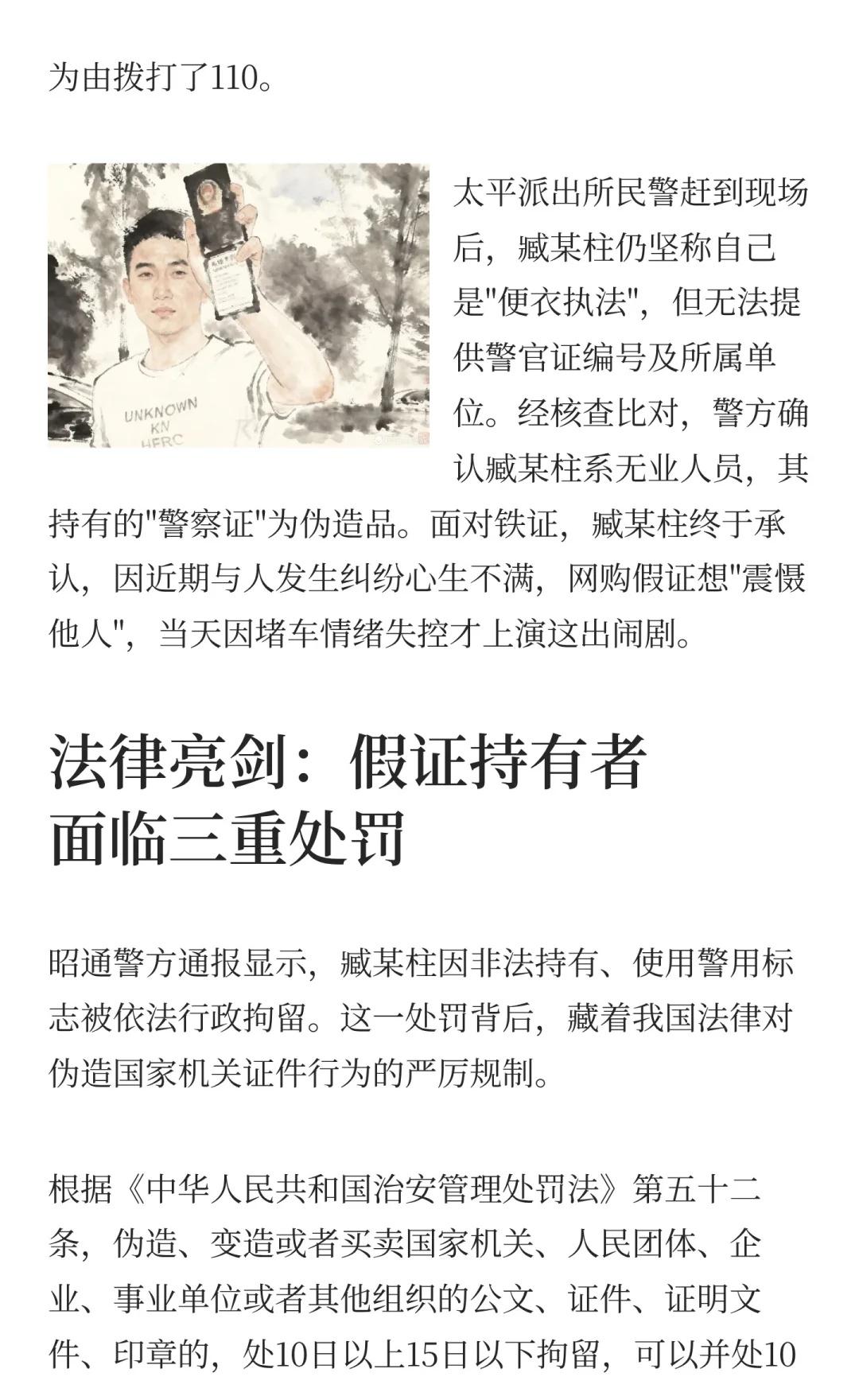 云南司机别车亮假警察证唬人被行拘 假证背 云南假警察证事件 行政拘留 法律警示