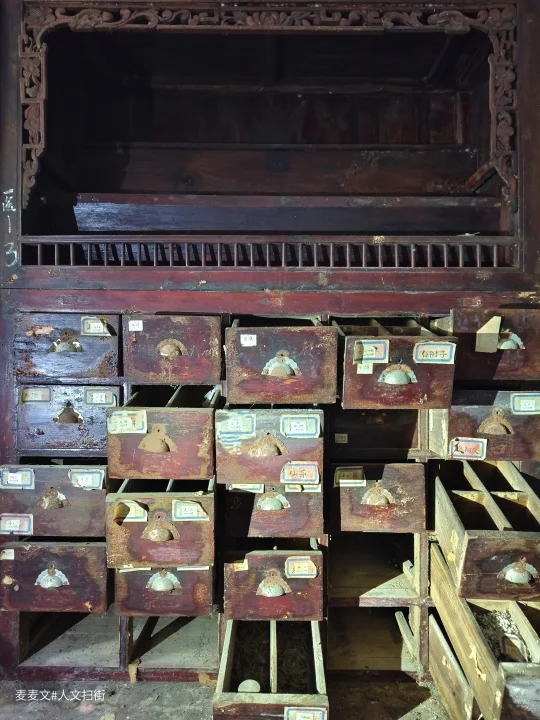 在重庆市万州区长滩镇上,偶遇一曾经热闹的老医院,推测是原江云厂职工医院。看样子已经闲置多年,大门紧闭。如今没有医生,也没有病人,只剩荒芜。从侧门走进那空荡荡的走廊,绿色墙裙剥落,墙面斑驳,氛围阴森又压抑。 然而,当我踏入中药房时,瞬间被那些老实木柜子吸引。它们静静伫立,虽表面布满岁月痕迹,抽屉有的半敞着,里面还残留着旧物,却仍散发着古朴的气息。仿佛在无声诉说着往昔的热闹与生机,承载着一段段治病救人的故事,让人不禁心生感慨。