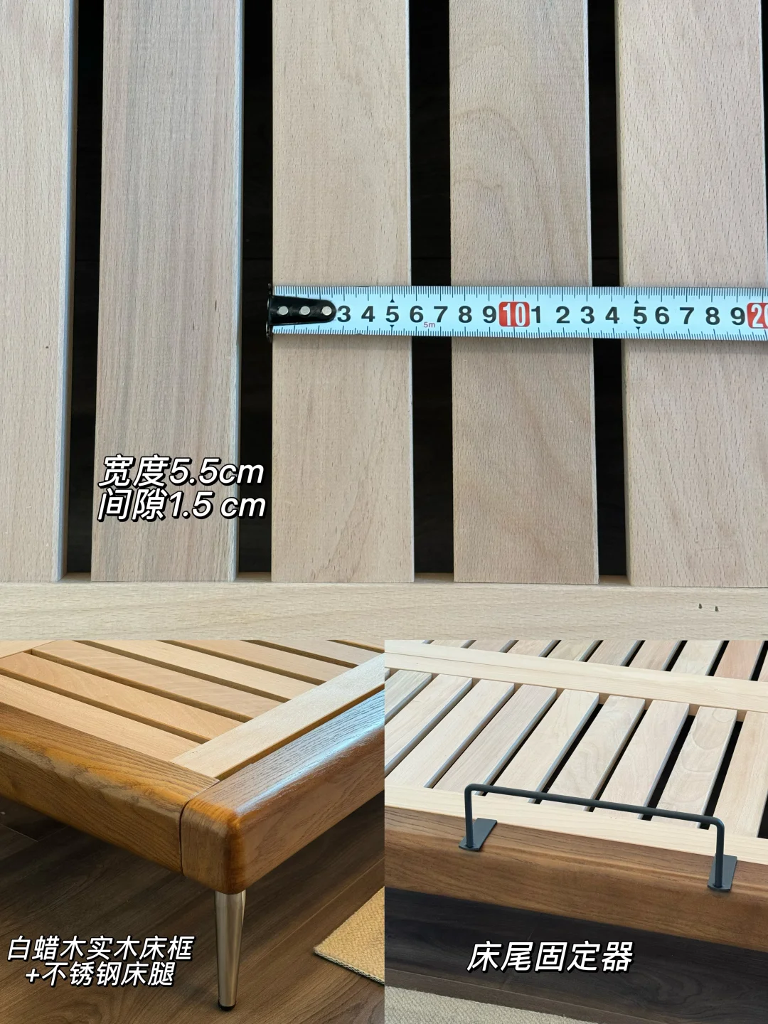加密榉木加榫卯结构的床架也很扎实,排骨间隙只1.5CM,承重力坚固没有异味,翻身起床,就算孩子在上面蹦跳也一点不摇晃