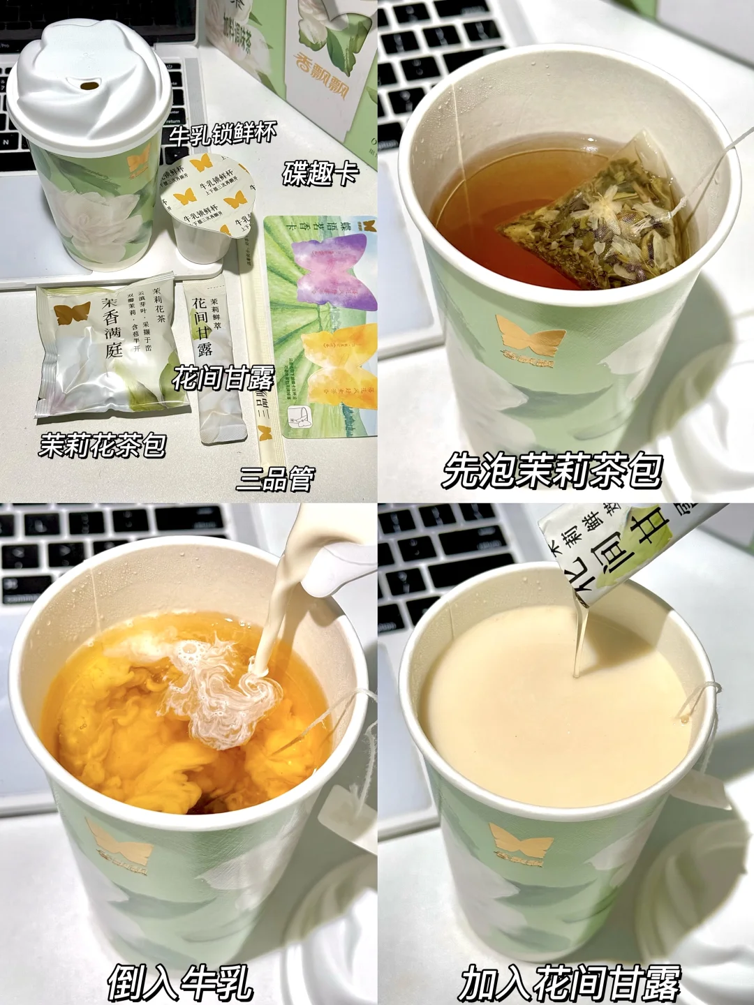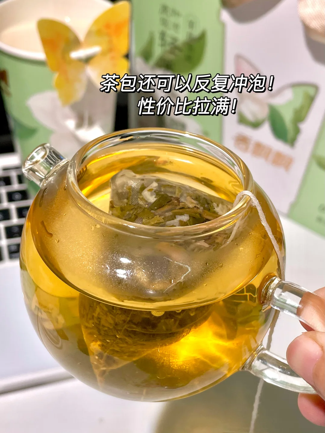 还是低GI低热量配方 不愧是莎莎严选!关键!算了下一杯热量才相当于半个牛油果🥑!糖度还可以自调 对管理期姐妹太友好了!!下午茶一杯茉莉轻乳茶一块茉莉蛋糕,谁懂这适配度。。。。泡完奶茶的茶包千万别浪费了,能复泡三次呢!性价比杠杠啊!!咱就说有这玩意儿,还点啥外卖呢!!