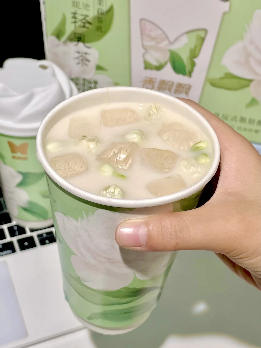 冲着莎莎代言,无脑入的.....没想到喝一口,直接被拿捏了!香飘飘不得不说你真的太会做奶茶了!!真原叶茶🌱+真茉莉花+真奶,口感完全不给奶茶店活路呀!!