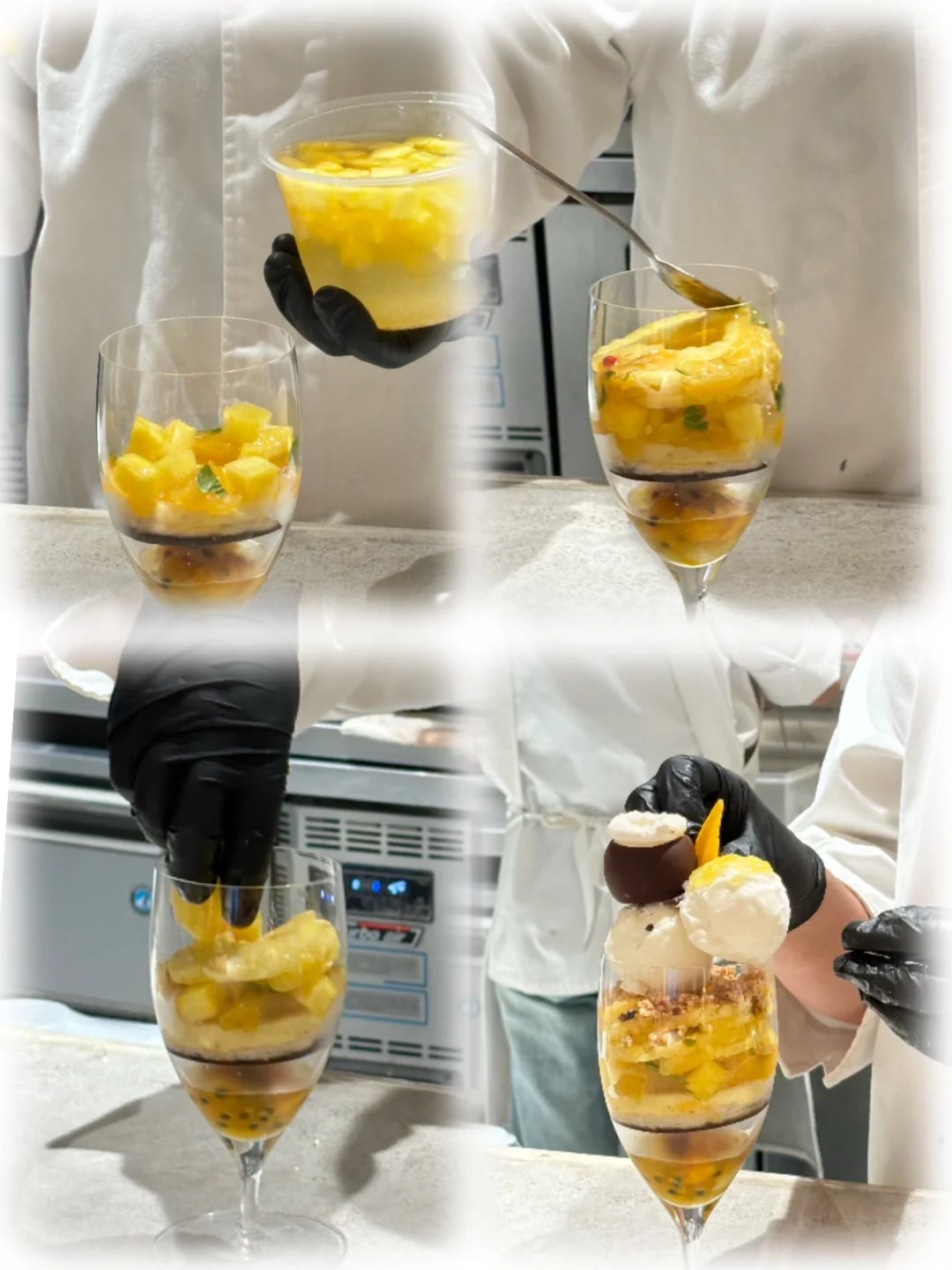 💖这款宝石芭菲-热带水果以🥭芒果、🍍菠萝、百香果等热带水果为主,层层叠叠有十几种元素进行搭配。坐在吧台可以看到从一只空玻璃杯到完成芭菲的全过程,酸甜的味道层次丰富,仿佛留住夏日的余韵,还有胡椒粒点缀其间,带来一丝隐约的麻辣口感。