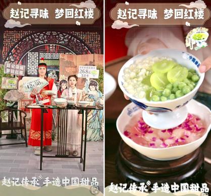 赵记传承以非遗手冲姜撞奶制作技艺的底蕴,融合红学的经典元素,对甜品进行创新演绎。数据显示,活动期间红楼系列新品销量环比增长140%,单场直播销售额突破110万元,验证了经典文化与非遗手冲姜撞奶制作技艺的联合,在现代商业环境下的转化潜力。