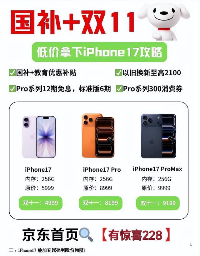10月31日20点-11月3日是京东双十一开门红阶段。这期间不仅有“满5000减1000”超级补贴券发放,而且部分商品还会有额外的折扣。对于购买iPhone17来说,能叠加的优惠众多,是入手的好时机。