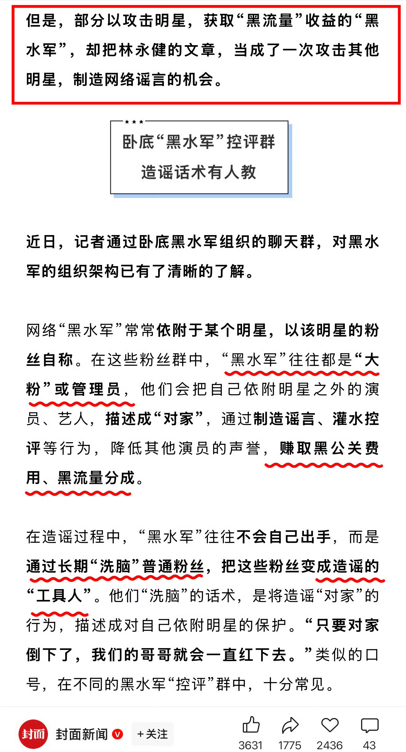 除了封面新闻,新闻晨报也报道了潶水军,越来越多媒体站出来发声了。希望有关部门重视,尽快落实政策,严查严惩潶水军和背后团队。