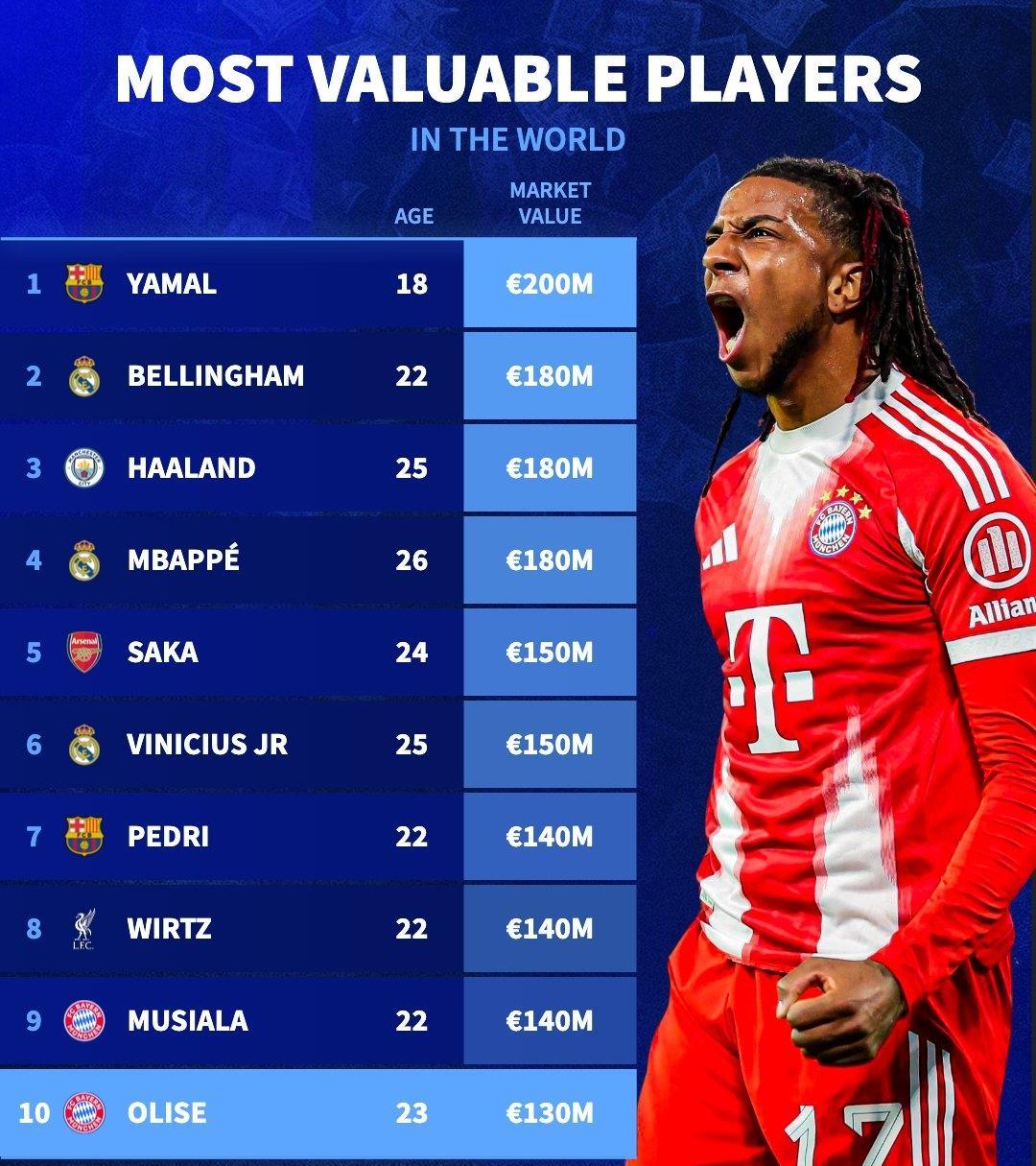 在西甲、意甲、法甲、德甲身价更新后,目前世界前20身价的球员如下: 亚马尔2亿,贝林厄姆,哈兰德,姆巴佩1.8亿,萨拉1.5亿,维尔茨1.4亿。 维尔茨踢得挣扎确实有水土不服,自身对抗不行的短板因素,但想象力创造力和个人能力摆在那,给点时间或许是下一个红军真大爹。亚马尔这岁数这表现你不能苛责更多。 至于贝林,只是个会抡大锤的货色,脚下太糙,创造力严重不足的,三喵的大爹还是凯恩。神龟如果能持续带飞的话第一身价迟早还是他的,18岁的神龟可是在世界杯决赛这种大场面打出过亮眼数据的狠人