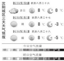 本报讯(沈阳晚报、沈阳发布客户端记者徐佳婷)10月16日,记者从沈阳市气象部门获悉,预计17日(周五)早晨至中午,沈北新区、新民、法库、康平多云有阵雨(0.5~2毫米);其他地区多云有分散性阵雨(0~0.5毫米)。降雨过后,气温继续下降,最高气温在8℃附近,最低气温降至0℃,同时偏北风依旧强劲,使体感更加寒冷。