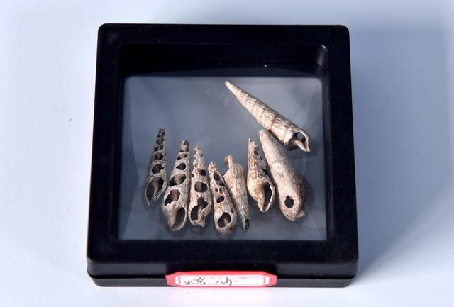 6月18日拍摄的宣化郑家沟遗址出土的螺饰。新华社发