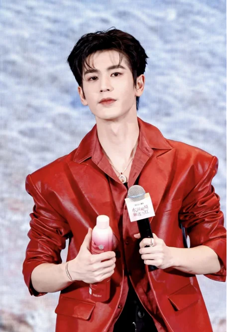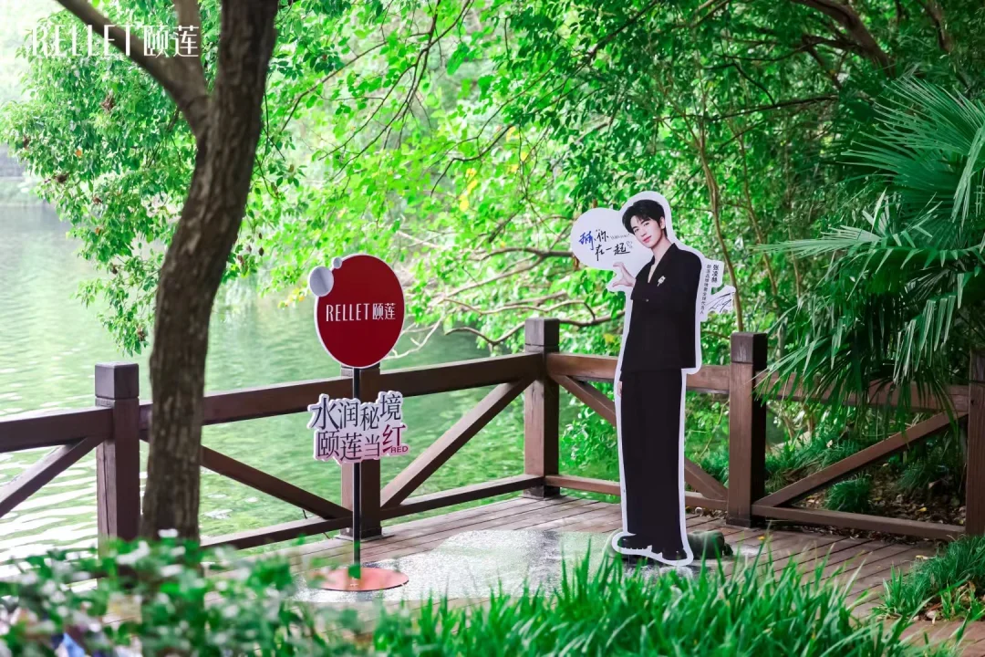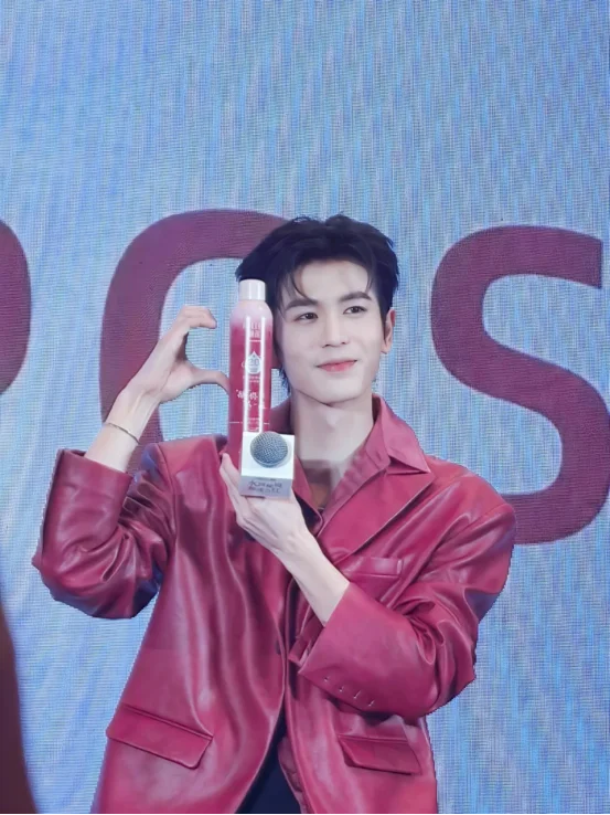张凌赫当红直播水润秘境颐莲当红 颐莲喷雾一袭红装