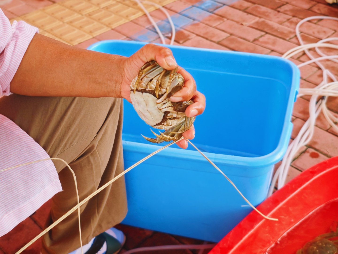 好的螃蟹是蟹农用心养出来的,看着老板一点点的帮我挑螃蟹,我知道我一定会是回头客